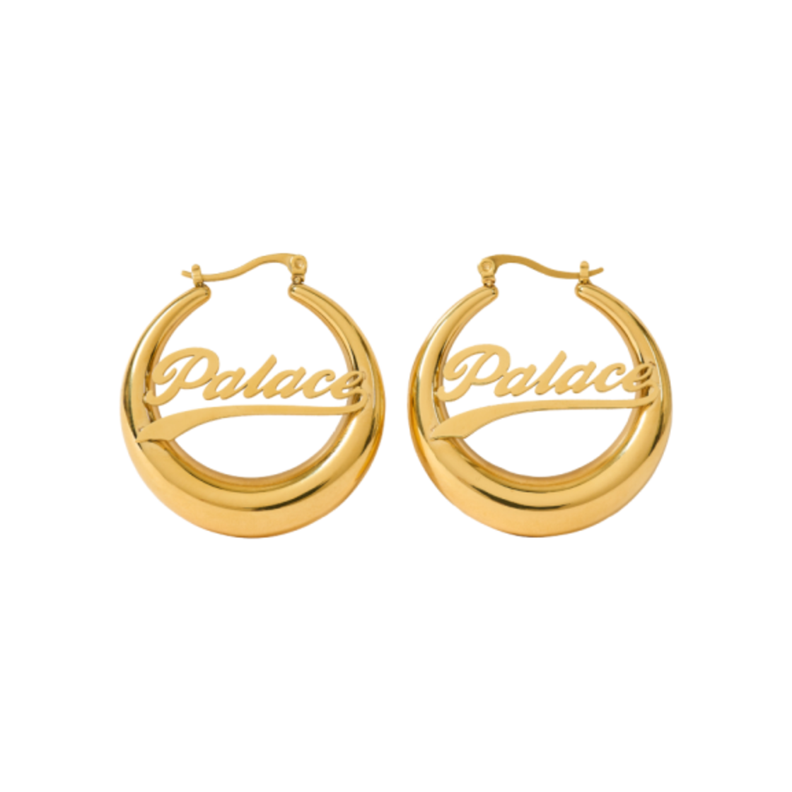 Palace Script Hoop Earrings Gold Plated - 24FW