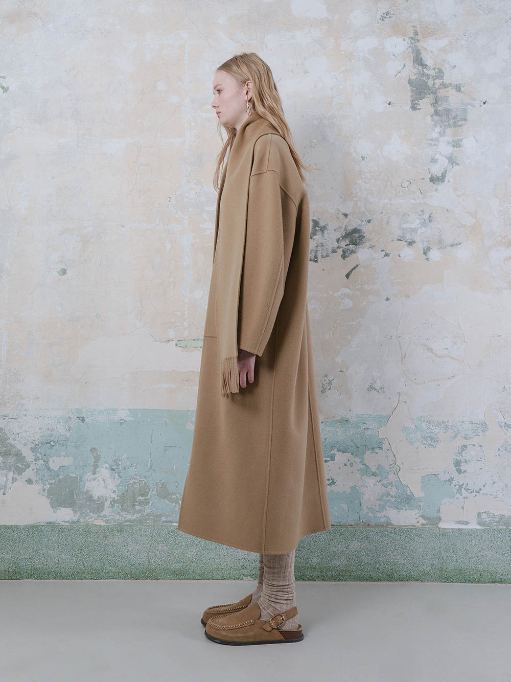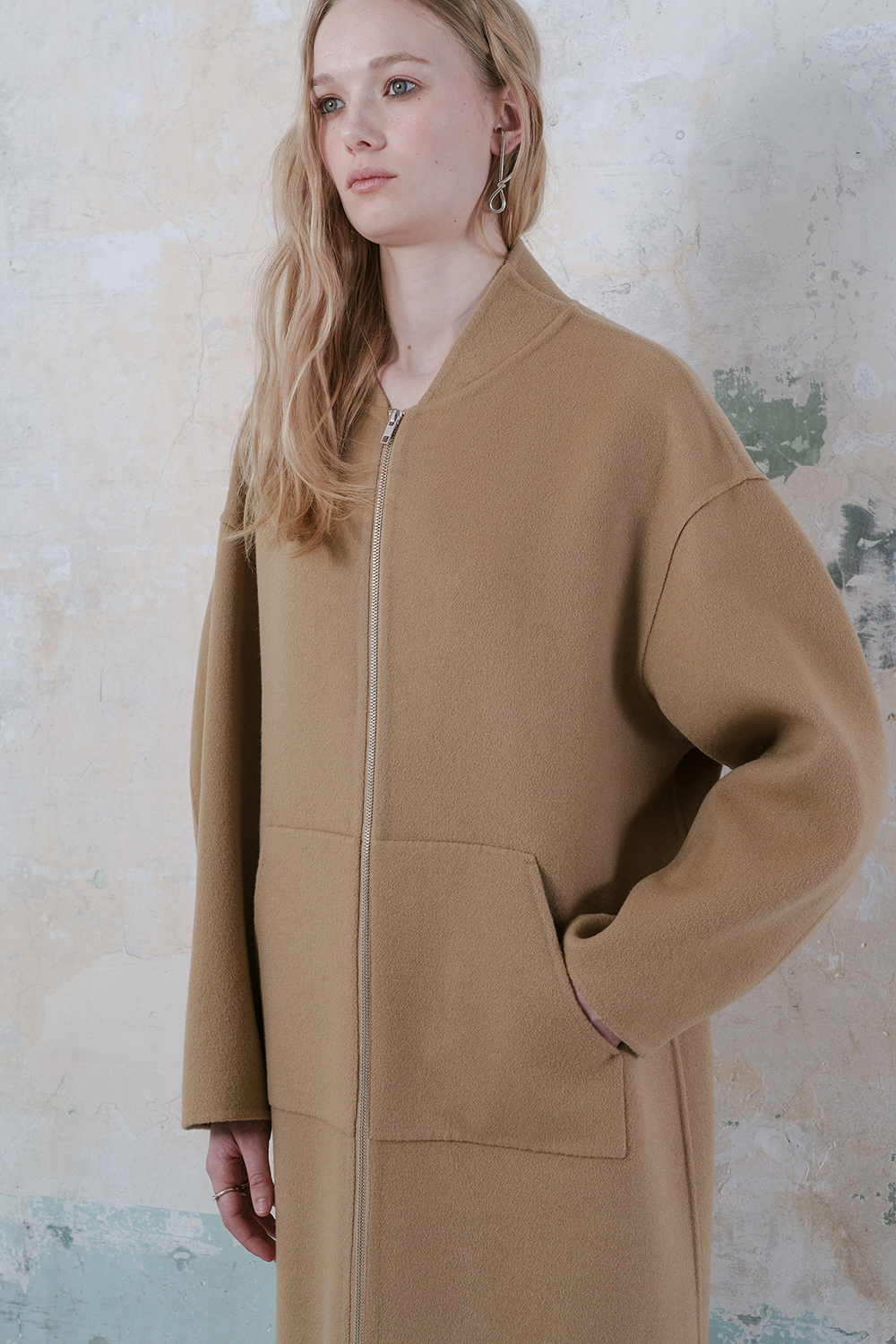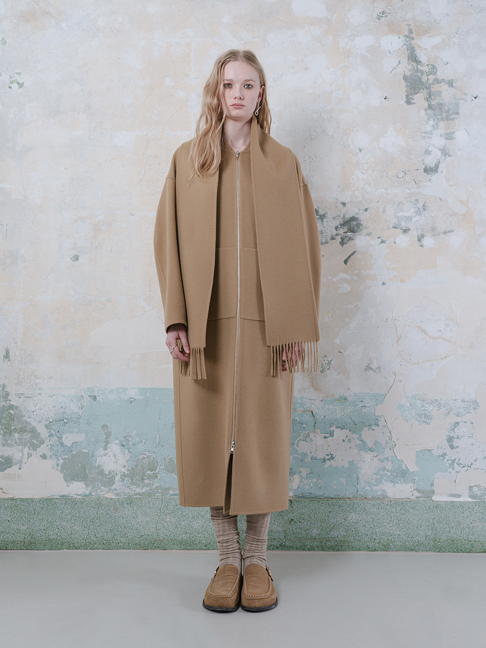 고엔제이 디태처블 머플러 양면 울 투웨이 집업 코트 베이지