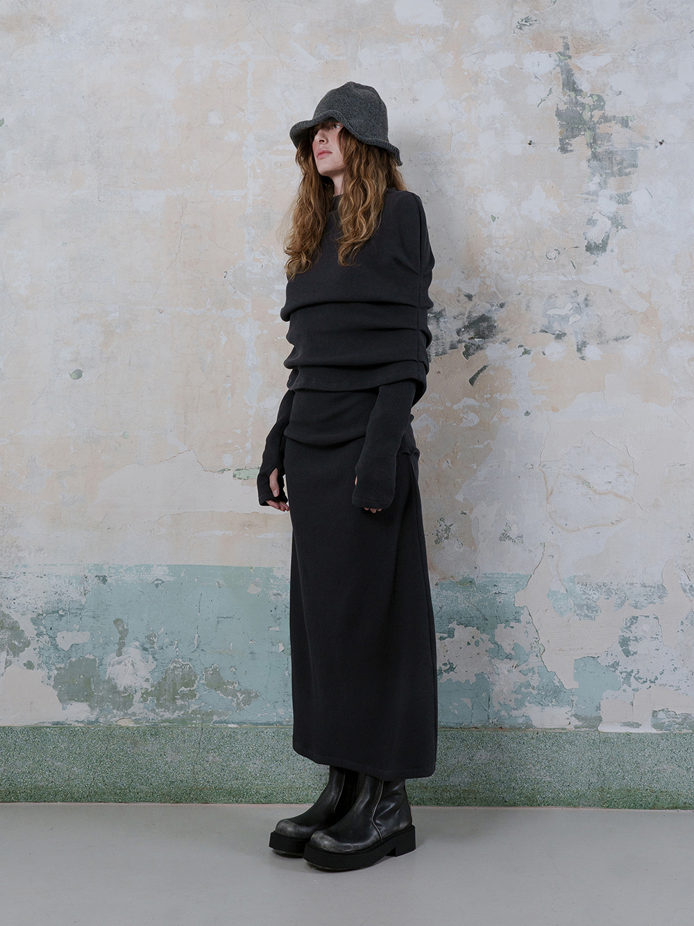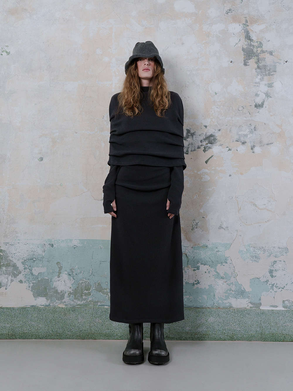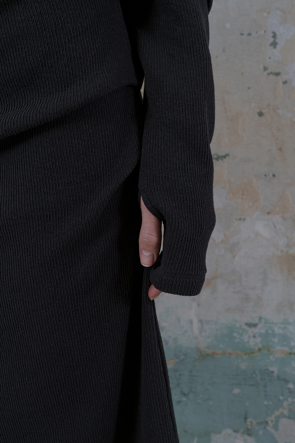 모델은 175cm이고 M 사이즈를 착용하였습니다. - 유기농 면과 재활용 폴리에스터로 제작되어 친환경적이고 지속 가능한 패션을 실현했습니다. - 케이프와 허리 부분에 턱 디테일이 더해져 구조적인 디자인을 강조합니다. - 소매 하단에는 핑거홀이 있어 실용적이면서도 스타일리시한 포인트를 제공합니다. - 신축성 있는 소재로 제작되어 편안한 착용감을 선사합니다. - 가슴, 허리, 엉덩이 부분에 슬림 핏으로 몸매를 강조하며 여성스러운 실루엣을 완성합니다.