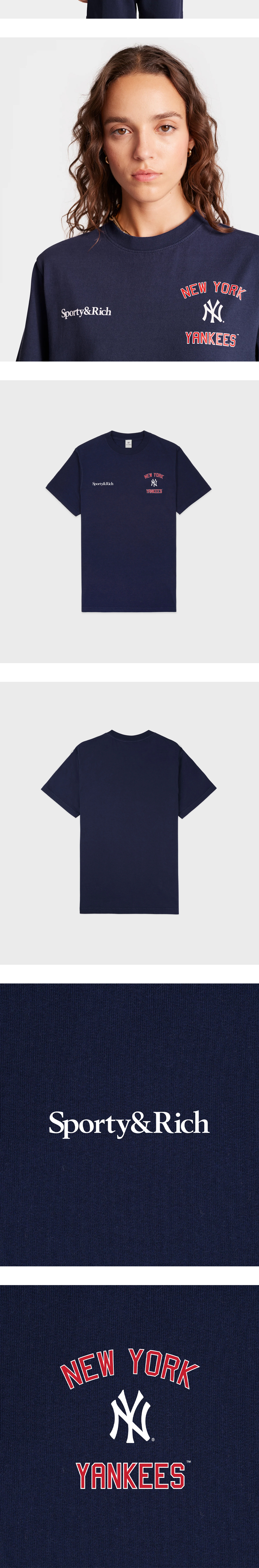 세련된 디자인과 USA 코튼의 원단감이 매력적인 스포티 앤 리치 x 뉴욕 양키스 티셔츠입니다. - 6.5온스 USA 코튼 100% - 약간 오버한 핏 - Pre-shrunken (방축가공) *모델: 178cm, S사이즈 착용