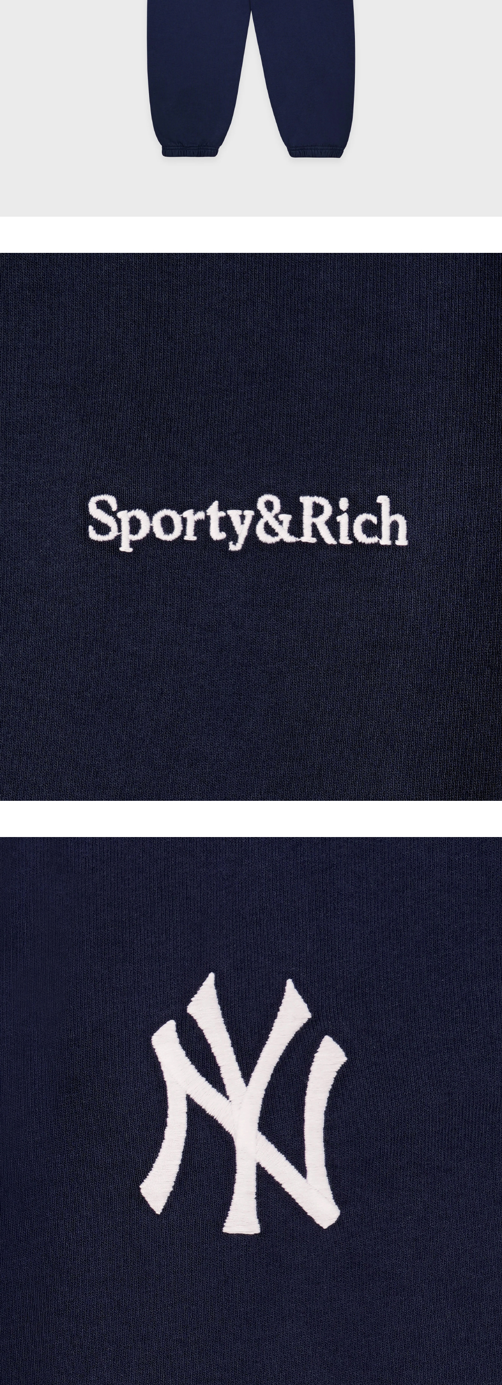 스포티 앤 리치 x 뉴욕 양키스 세리프 스웨트팬츠 네이비 화이트 - 24FW