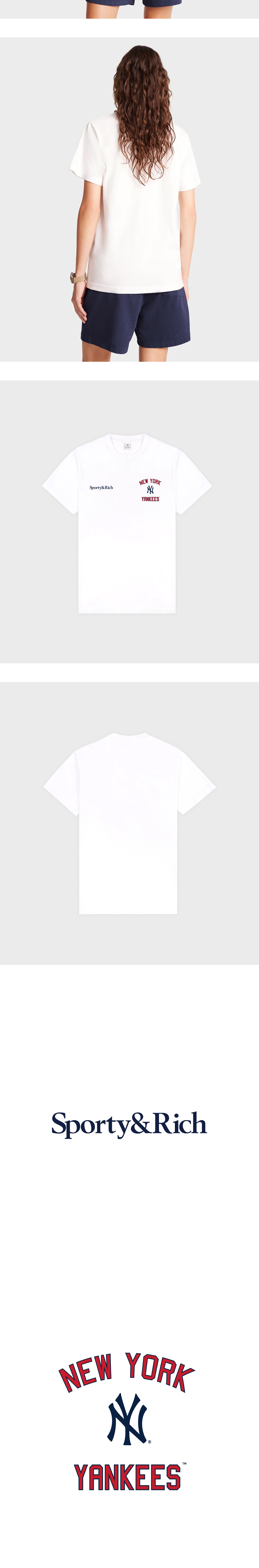 세련된 디자인과 USA 코튼의 원단감이 매력적인 스포티 앤 리치 x 뉴욕 양키스 티셔츠입니다. - 6.5온스 USA 코튼 100% - 약간 오버한 핏 - Pre-shrunken (방축가공) *모델: 178cm, S사이즈 착용