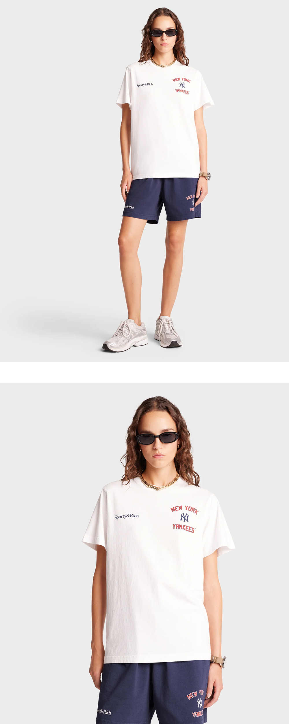 스포티 앤 리치 x 뉴욕 양키스 홈런 티셔츠 화이트 스포츠 레드 네이비 - 24FW