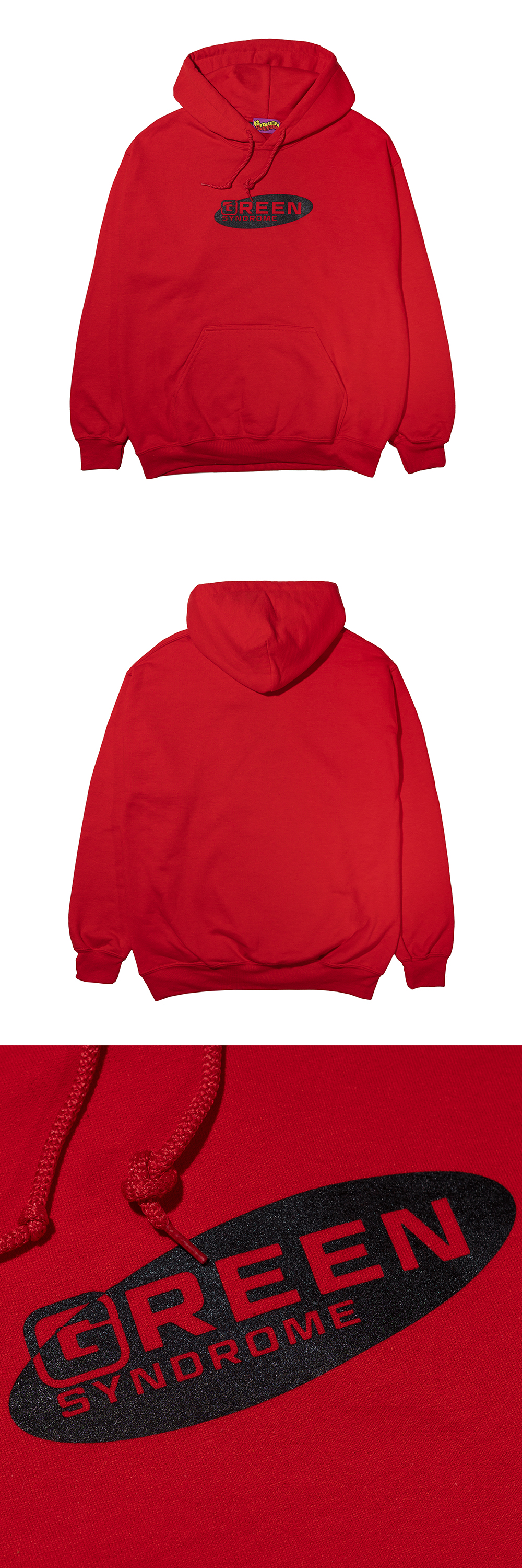GREEN SYNDROME ELLIPSE HOODIE RED Printed front graphics 100% Cotton Made in Korea