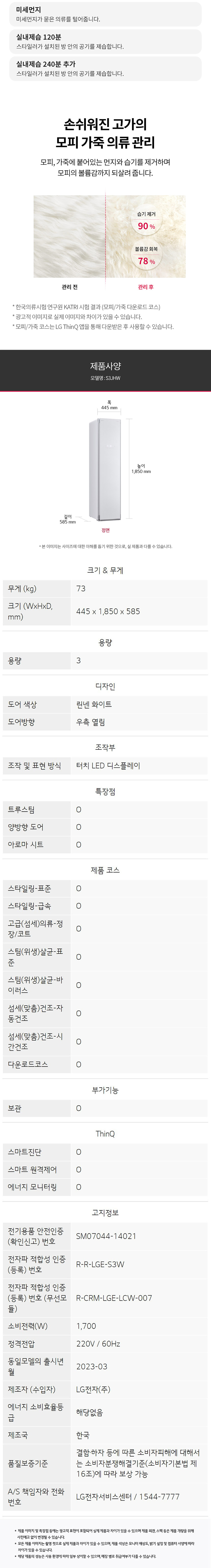 A/S 책임자 전화번호 : LG전자고객센터 / 1544-7777