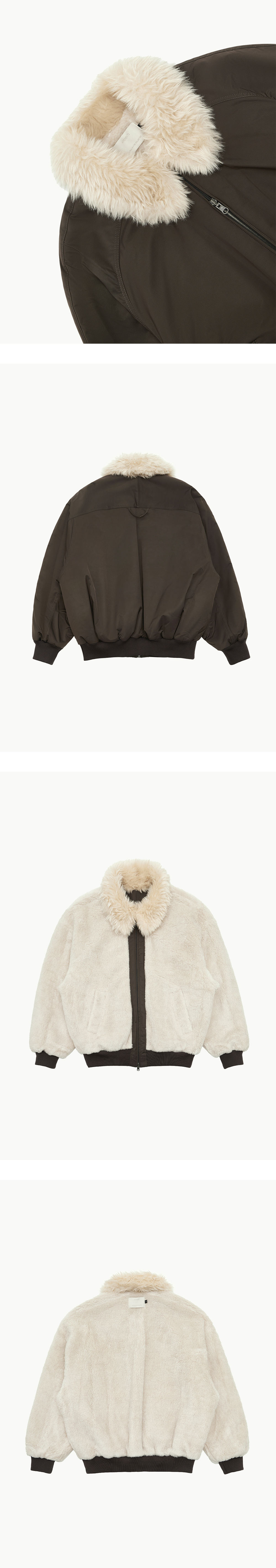 아모멘토 리버시블 오버사이즈 시어링 점퍼 브라운 - 24FW