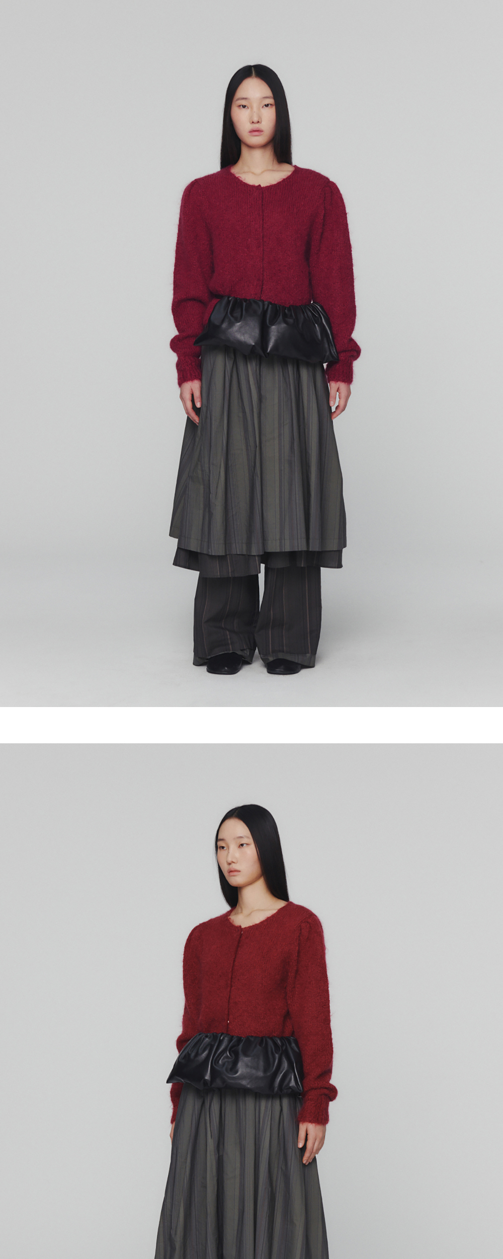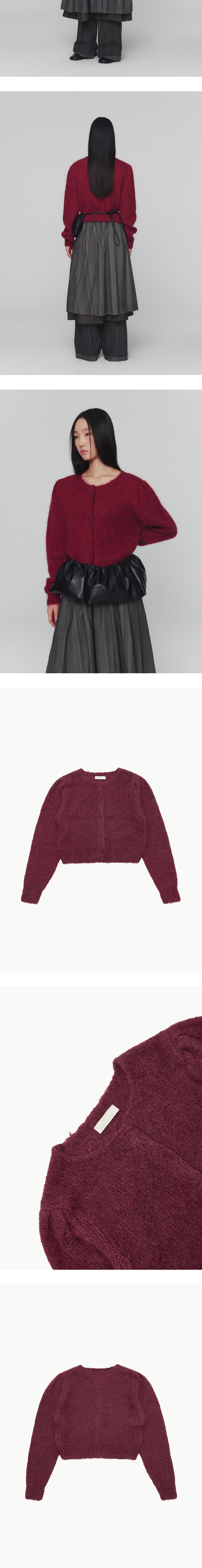 기존의 그랜마 가디건을 더욱 미니멀하게 변화시킨 아모멘토의 뉴 그랜마 가디건입니다. - 넥라인과 단작(플래킷)이 숨겨진 디자인 - 아모멘토 익스클루시브로 개발된 모헤어 원사 사용 - 빈티지하고 헤어리한 질감 - 어깨 셔링 디테일로 볼륨감 있는 실루엣 - 여유 있는 소매 및 크롭 기장 - 허리 및 손목 립 마감 - 히든 스냅 버튼 클로징