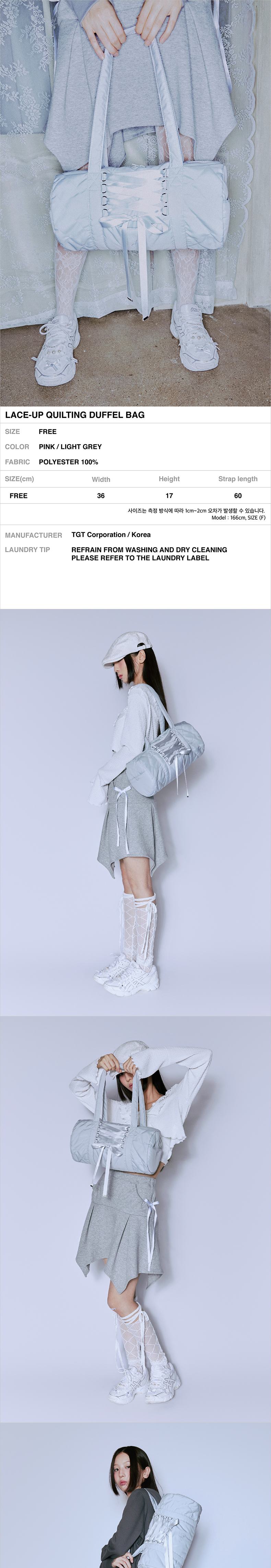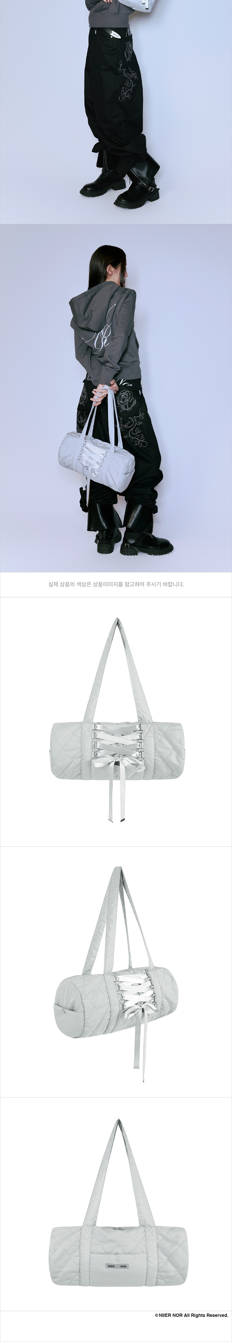 니어 노어 레이스업 퀼팅 더플백 라이트 그레이