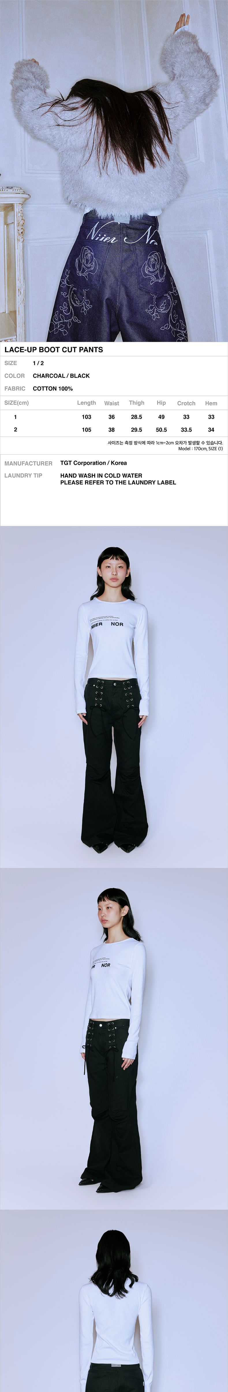 니어 노어 레이스업 부츠컷 팬츠 블랙