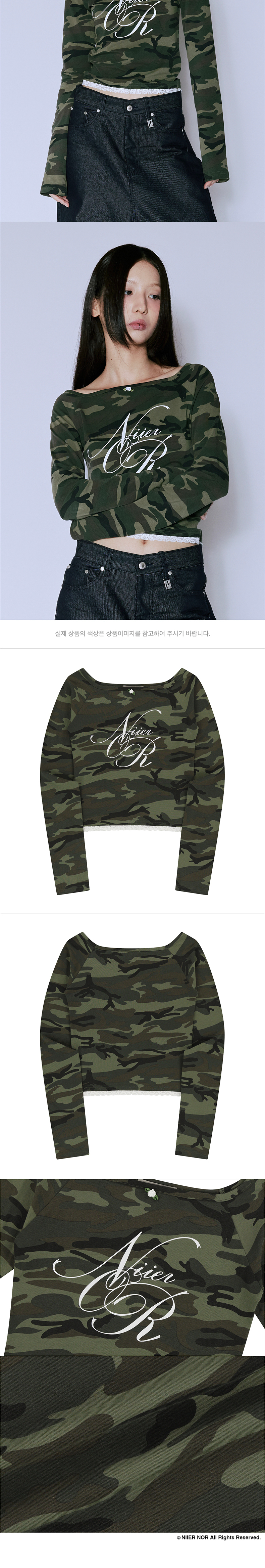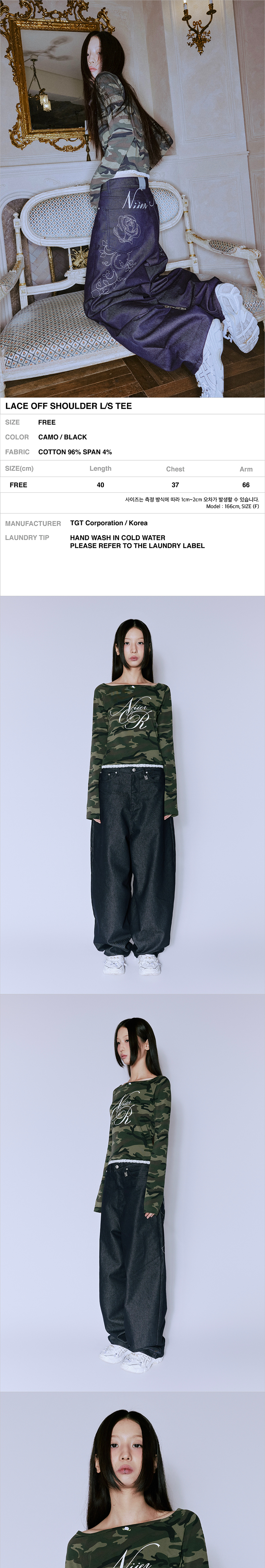 니어 노어 레이스 오프숄더 롱슬리브티 카모