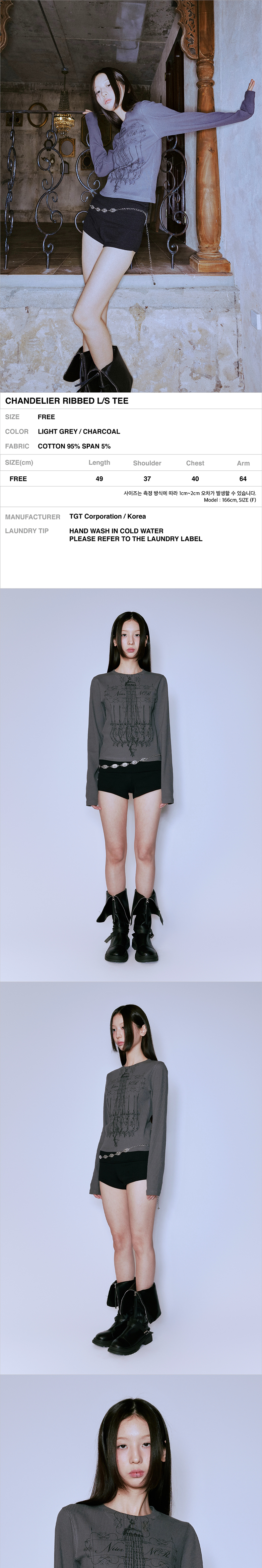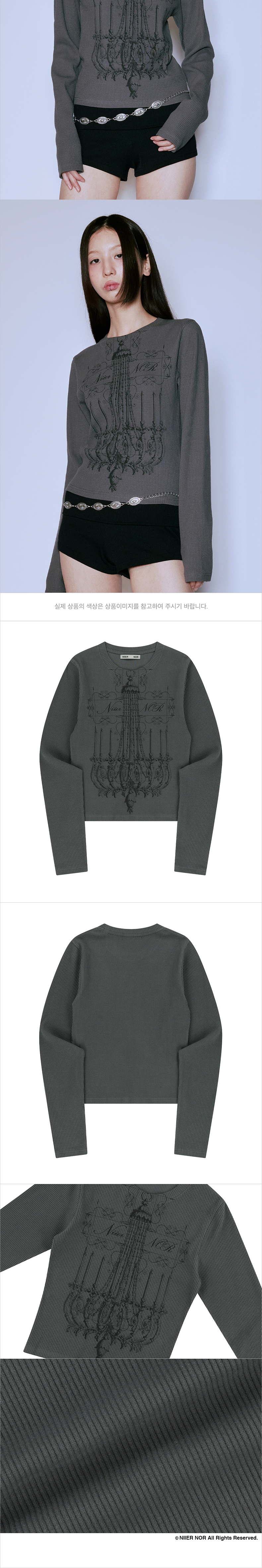 니어 노어 샹들리에 리브드 롱슬리브티 차콜