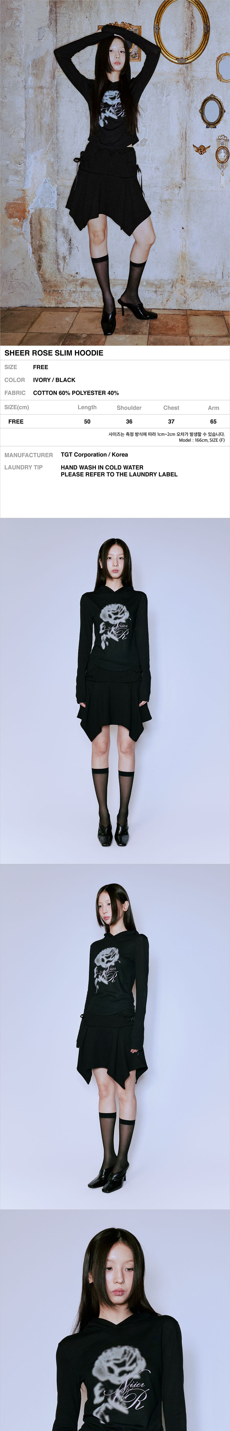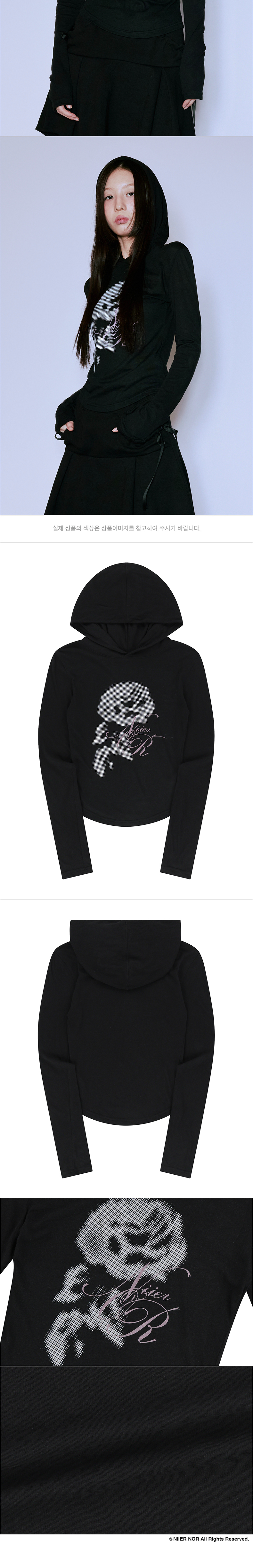 NIIER NOR Sheer Rose Slim Hoodie Black