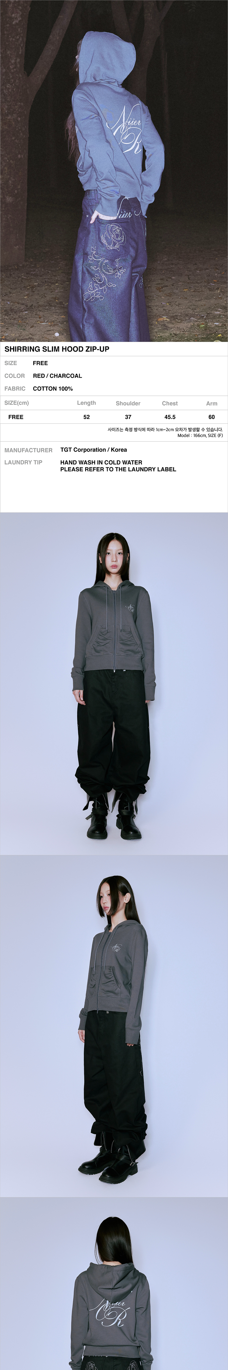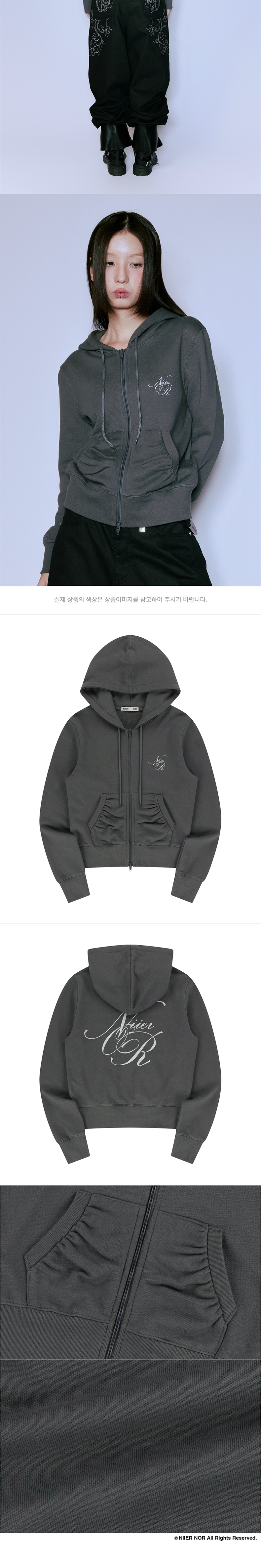 NIIER NOR Shirring Slim Hood Zip Up Charcoal