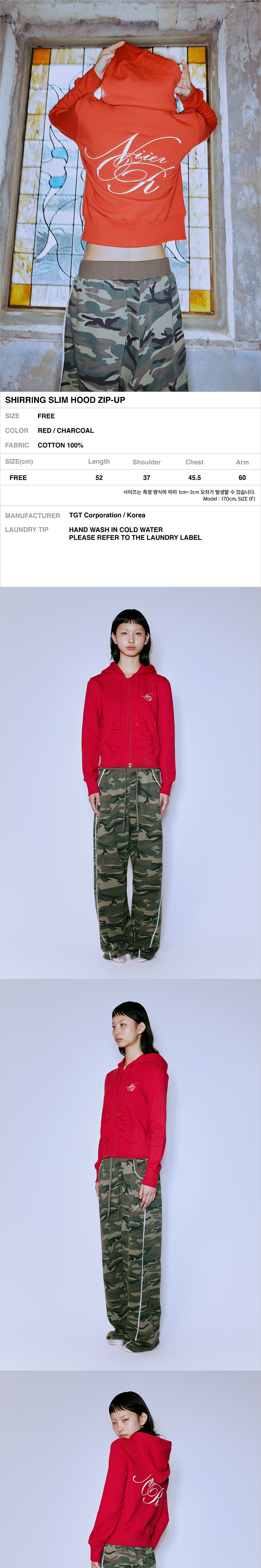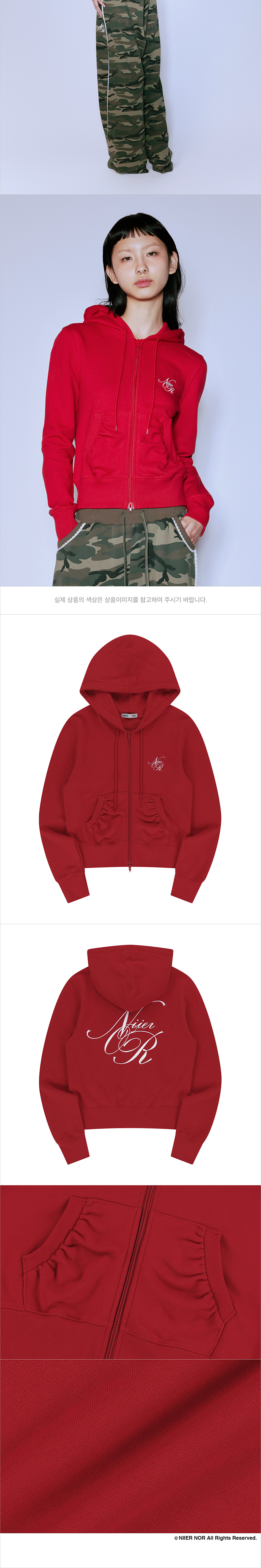 니어 노어 셔링 슬림 후드집업 레드