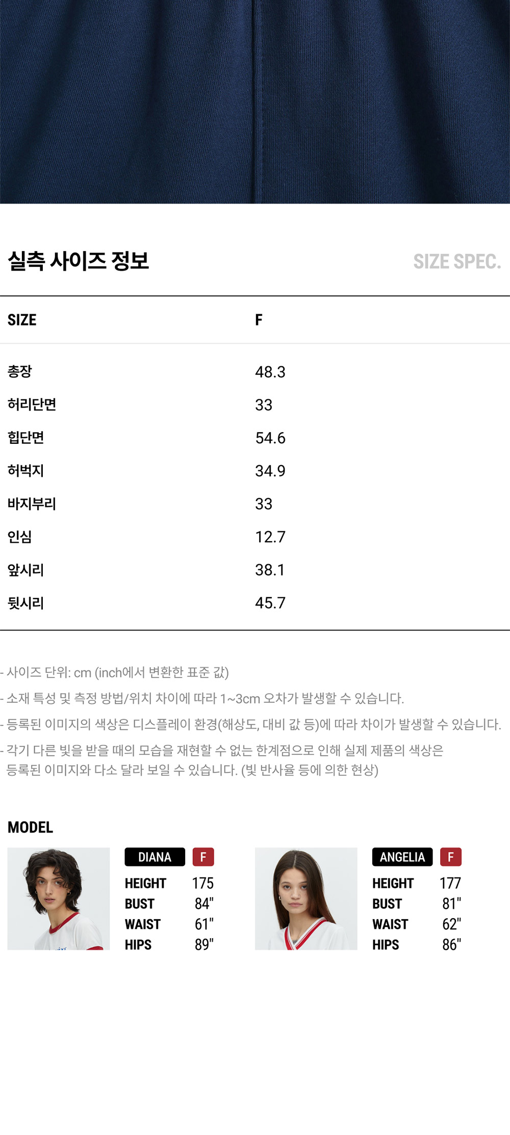 실측 단위는 cm이며, 제품의 단면을 기준으로 측정했습니다.