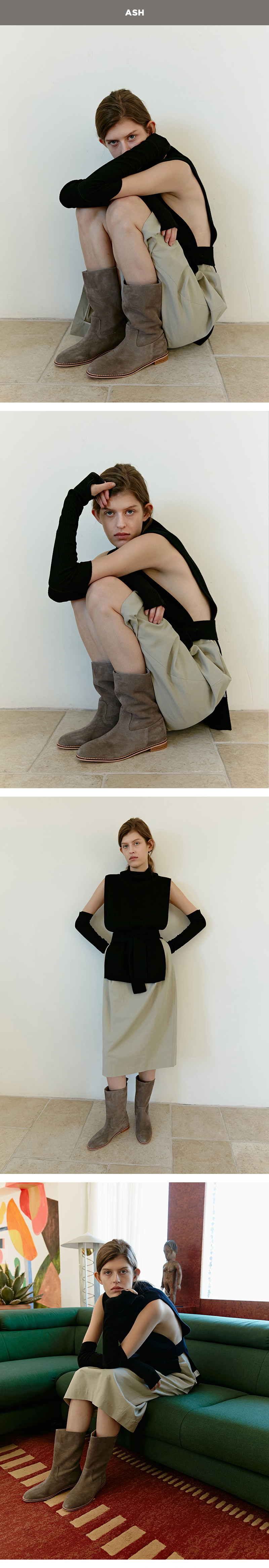 지퍼없는 풀오버 타입의 미니멀한 하프부츠. 신으면 신을 수록 발에 맞게 길들여지는 부드러운 가죽. 일체의 군더더기를 배제하고 편안함에 중점을 둔 시즌리스 아이템.