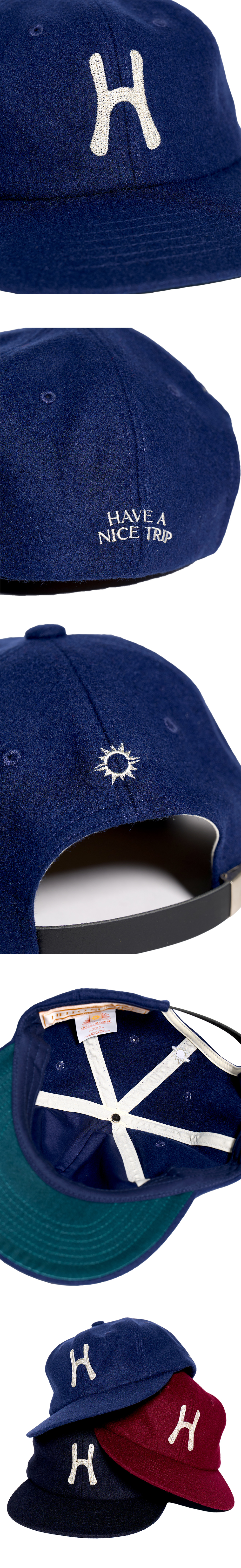 헬로선라이즈 H 로고 그래픽이 체인 자수로 들어간 6패널 캡입니다. - 새로운 Relaxed Fit 개발로 기존 6패널 캡보다 여유로운 착용감 - 기존핏보다 1cm 더 높아진 17.5cm로 깊이감이 있는 착용감 - 옆면 Have a nice trip 포인트 자수 처리 - 뒷판 Hello Sunrise 심볼 자수 처리 - 내부 해리마감 및 챙 하부 새틴 배색 포인트 처리 * 모자의 챙을 개인적인 취향에 따라 원하시는 각도로 구부려 착용하시길 권장 드립니다. * 모자 뒷면의 가죽 스트랩에 자국은 공정중의 과정 때문이므로 반품사유가 되지 않습니다. * Wool 50% / Poly 50% / Cow Leather Strap 100% Made in Korea