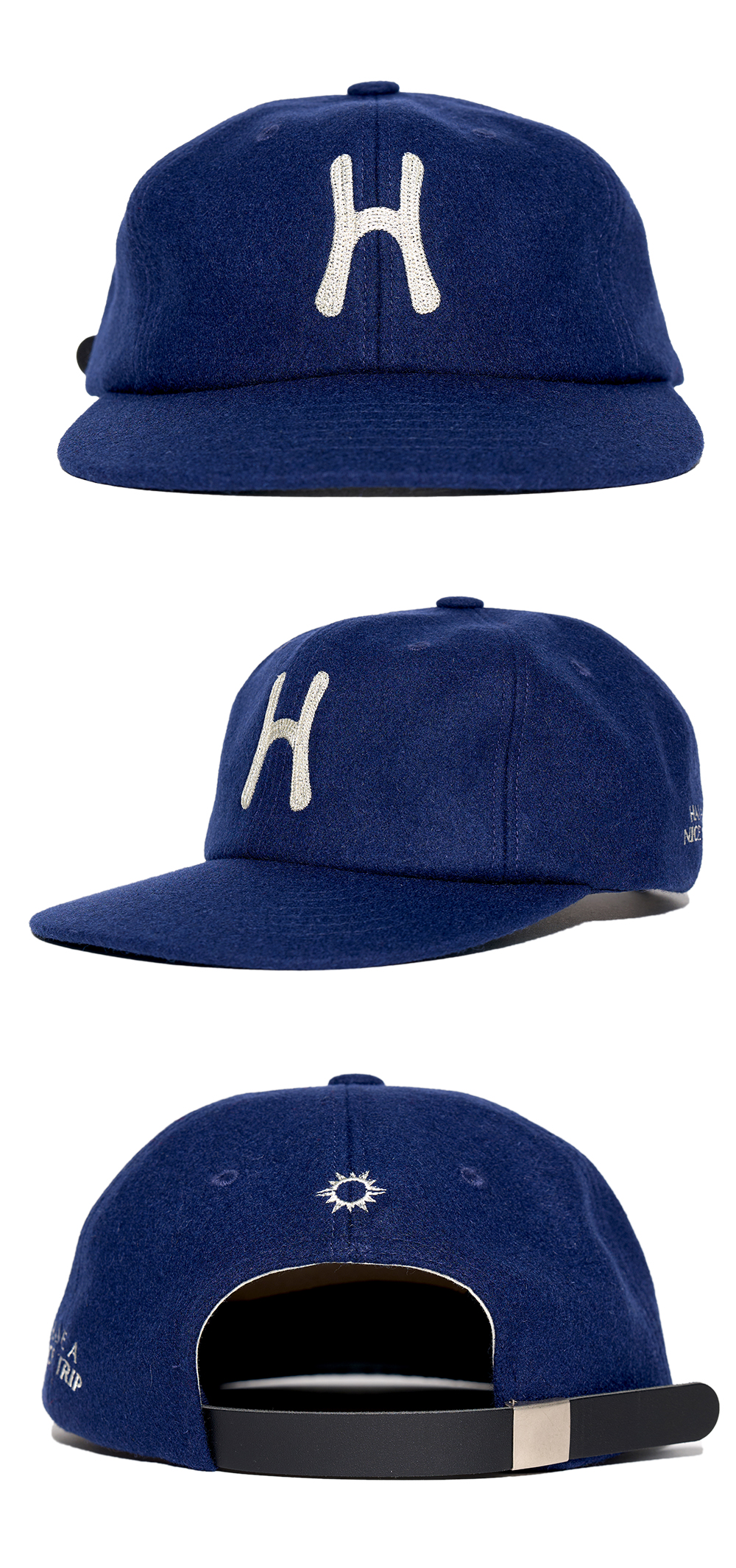 Hello Sunrise H Logo Wool Relaxed Fit 6 Panel Cap Deep Blue