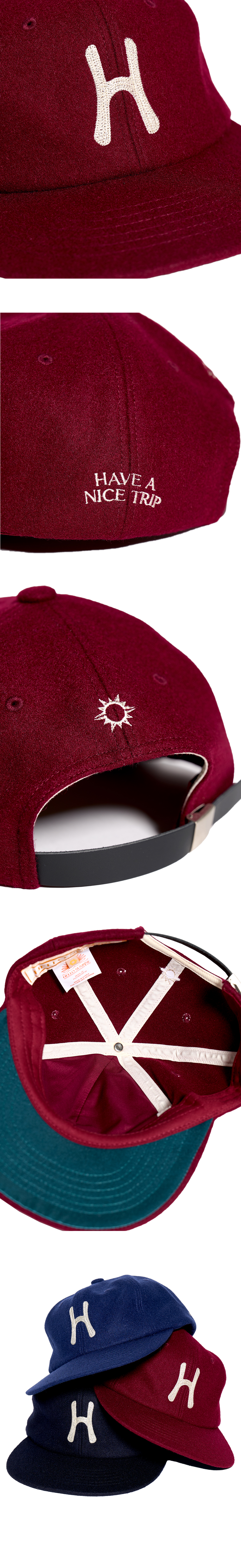 헬로선라이즈 H 로고 그래픽이 체인 자수로 들어간 6패널 캡입니다. - 새로운 Relaxed Fit 개발로 기존 6패널 캡보다 여유로운 착용감 - 기존핏보다 1cm 더 높아진 17.5cm로 깊이감이 있는 착용감 - 옆면 Have a nice trip 포인트 자수 처리 - 뒷판 Hello Sunrise 심볼 자수 처리 - 내부 해리마감 및 챙 하부 새틴 배색 포인트 처리 * 모자의 챙을 개인적인 취향에 따라 원하시는 각도로 구부려 착용하시길 권장 드립니다. * 모자 뒷면의 가죽 스트랩에 자국은 공정중의 과정 때문이므로 반품사유가 되지 않습니다. * Wool 50% / Poly 50% / Cow Leather Strap 100% Made in Korea