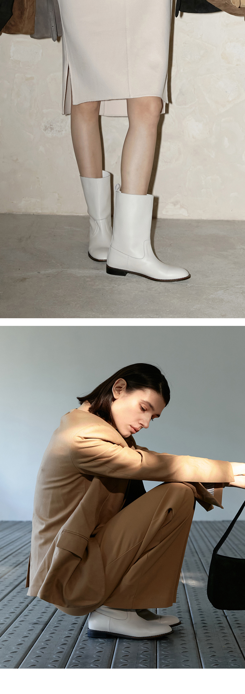 지퍼없는 풀오버 타입의 미니멀한 하프부츠. 신으면 신을 수록 발에 맞게 길들여지는 부드러운 가죽. 일체의 군더더기를 배제하고 편안함에 중점을 둔 시즌리스 아이템.