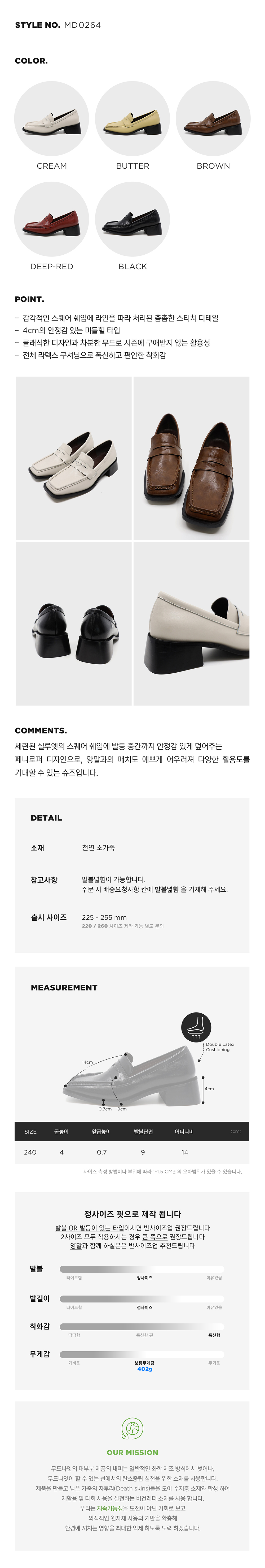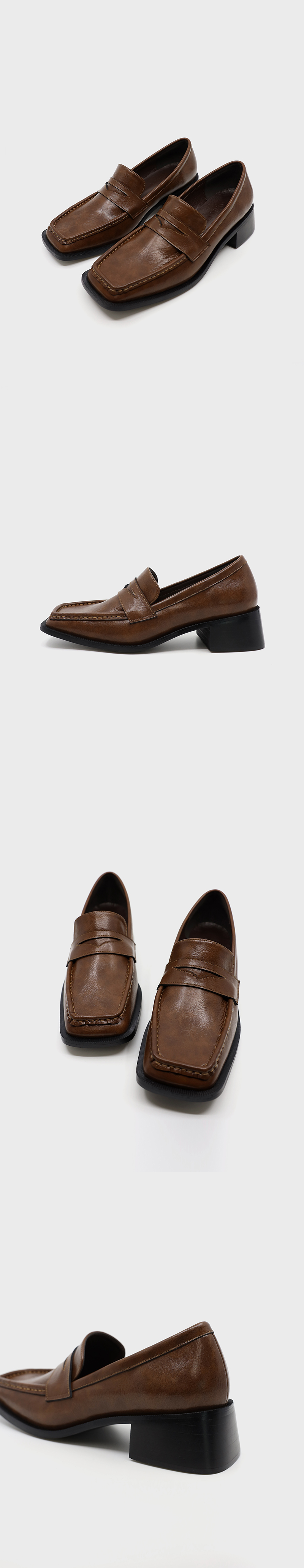 감각적인 스퀘어쉐입에 라인을 따라 스티치로 포인트된 클래식한 로퍼