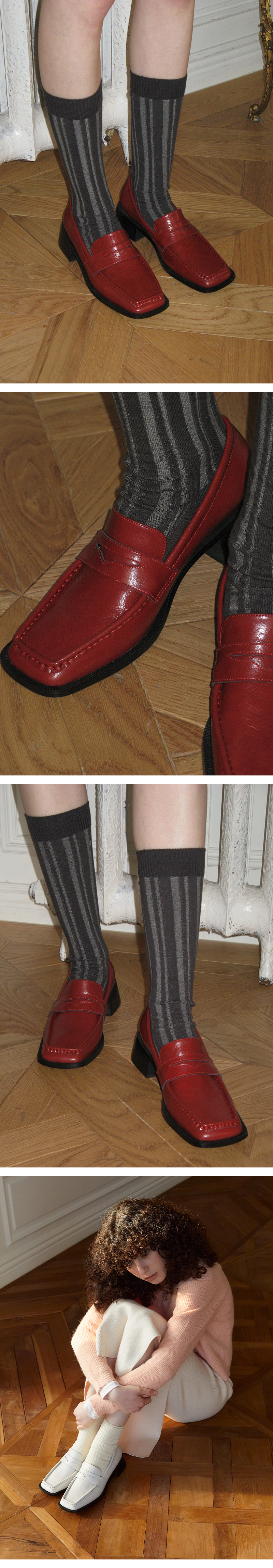 감각적인 스퀘어쉐입에 라인을 따라 스티치로 포인트된 클래식한 로퍼