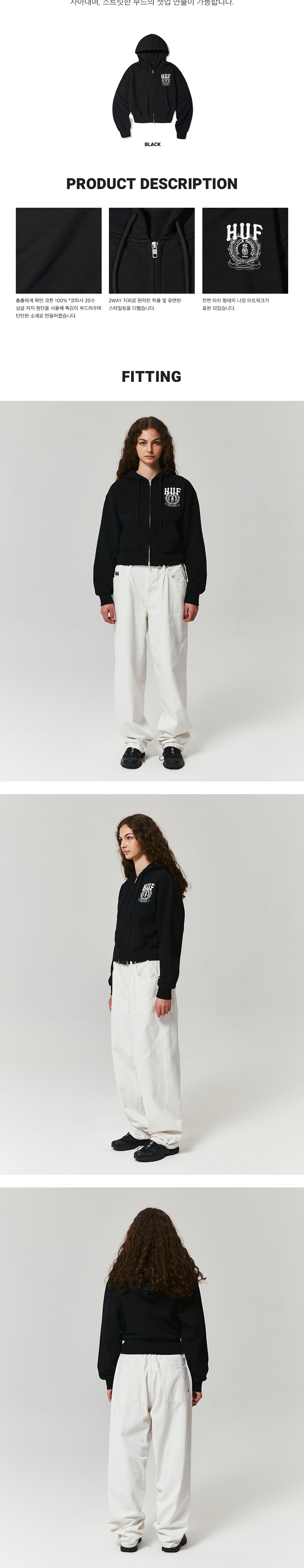 허프 X 레디 피나클 유니버시티 후드 집업 여성 블랙