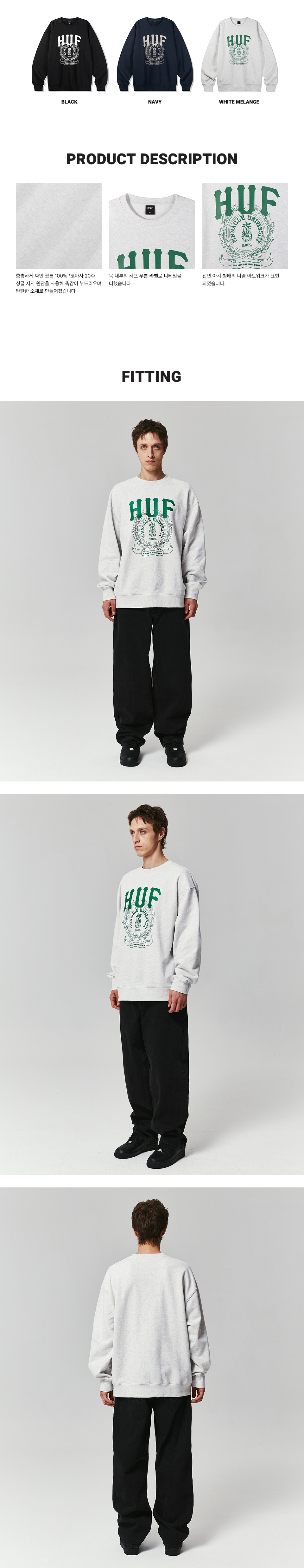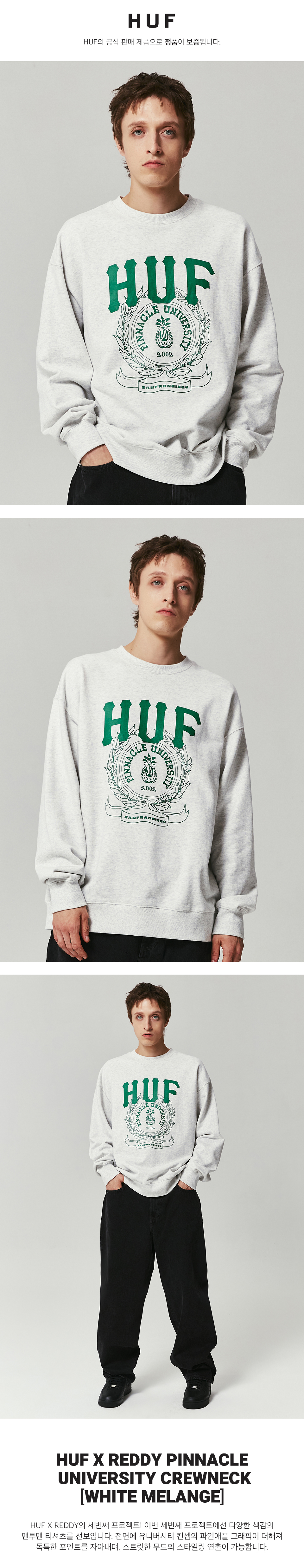 허프 X 레디 피나클 유니버시티 크루넥 화이트 멜란지