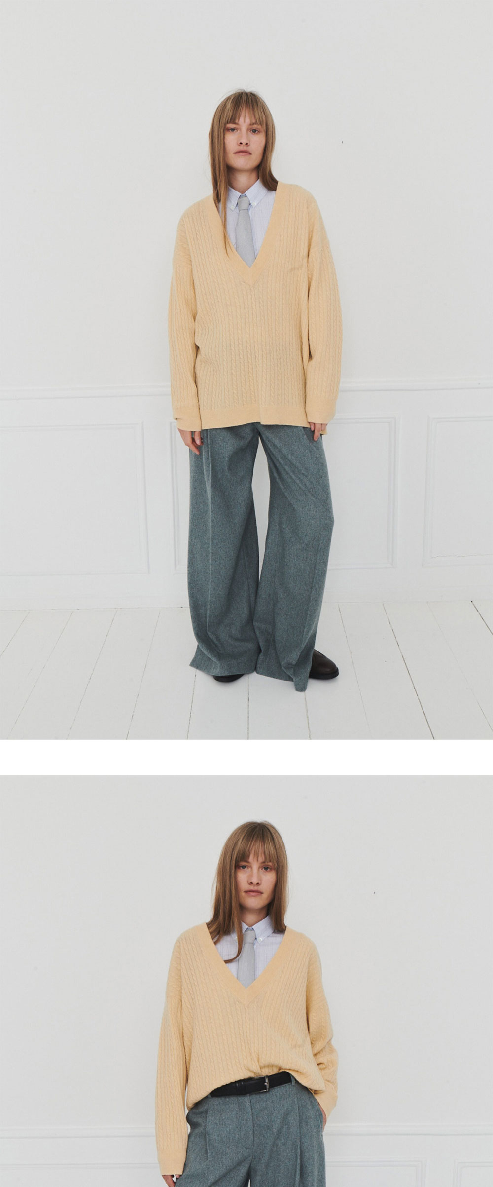 더가먼츠 우먼 코모 오버사이즈드 브이넥 바나나 밀크 - 24FW