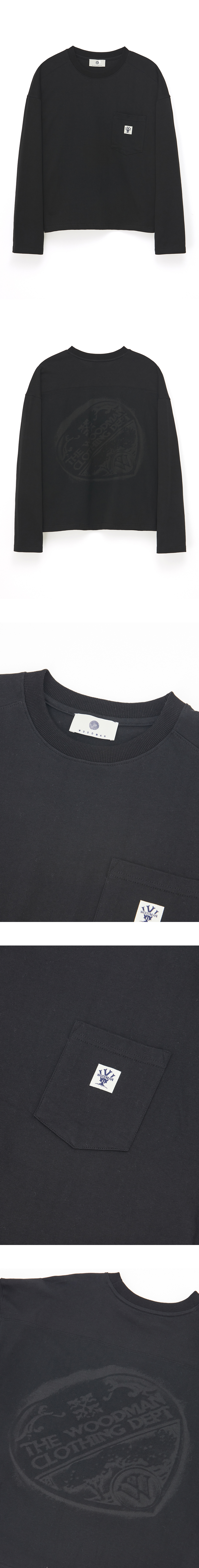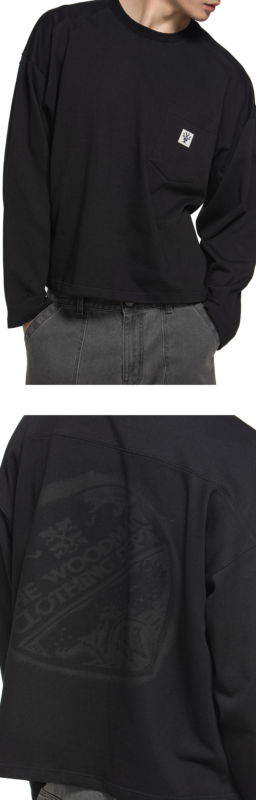 하트형태의 우드먼 로고를 왁스 씰링 그래픽으로 표현한 롱 슬리브 입니다. 기장이 짧고 소매가 길게 떨어지는 디자인된 제품입니다. - 전면 가슴 포켓과 포인트 라벨 - 후면 왁스 씰링 프린팅