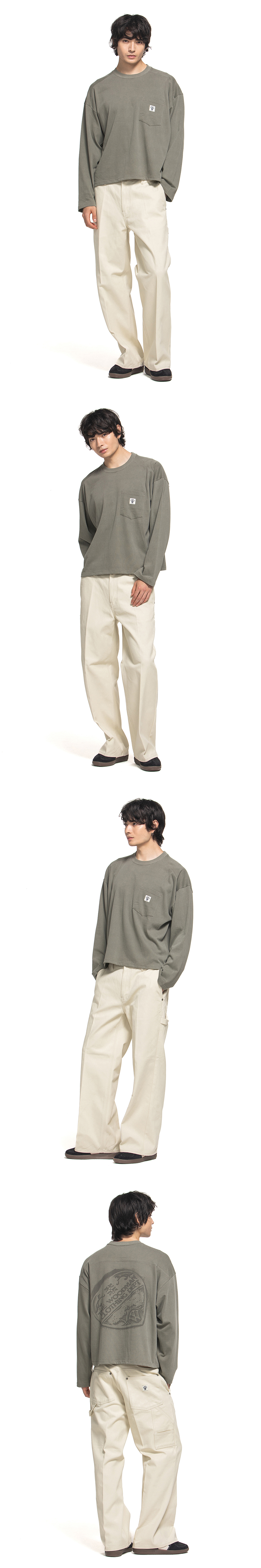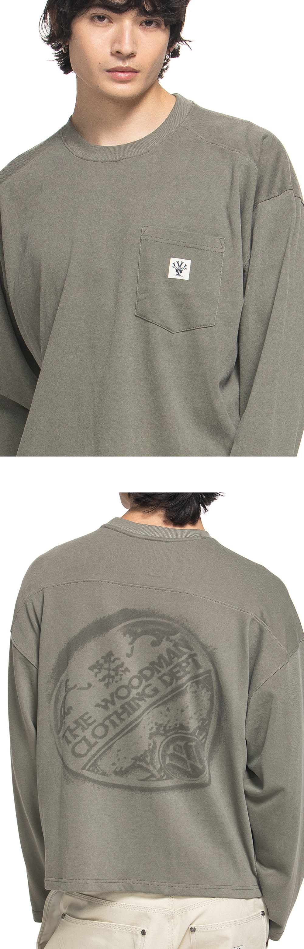 하트형태의 우드먼 로고를 왁스 씰링 그래픽으로 표현한 롱 슬리브 입니다. 기장이 짧고 소매가 길게 떨어지는 디자인된 제품입니다. - 전면 가슴 포켓과 포인트 라벨 - 후면 왁스 씰링 프린팅