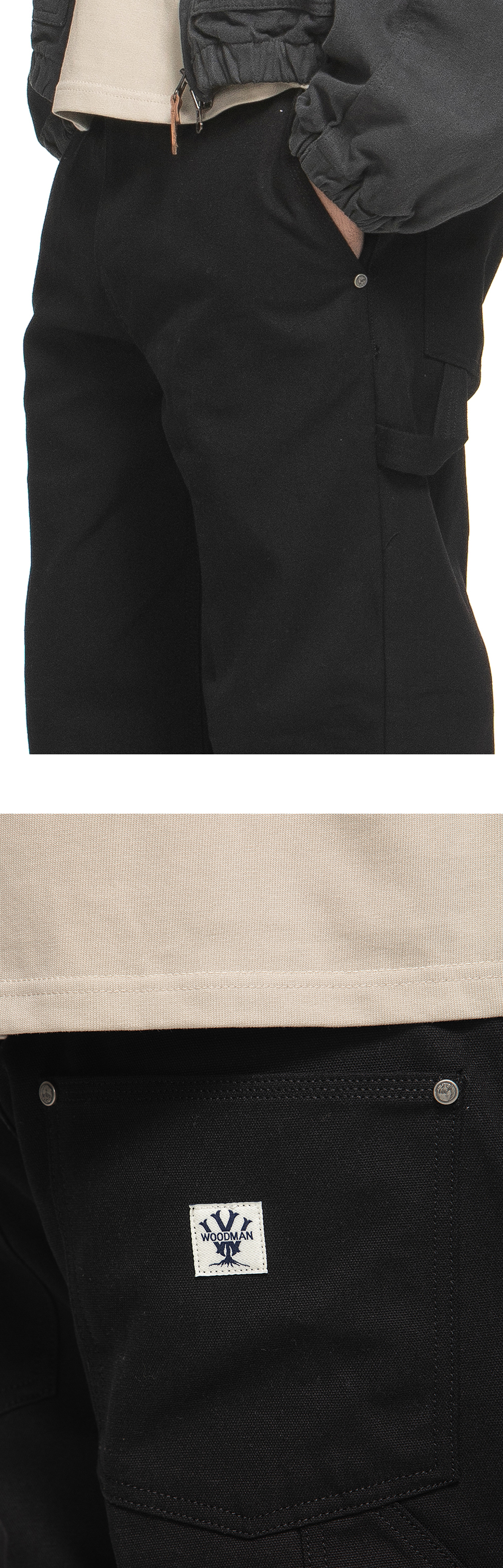 일반적인 실루엣의 카펜터 팬츠가 아닌 우드먼이 새롭게 재안하는 핏의 카펜터 팬츠 입니다. 와이드한 느낌과 스트레이트한 느낌을 동시에 가질 수 있도록 디자인 되었습니다. 카펜터 팬츠의 기본적인 디테일들이 더욱 돋보일 수 있도록 하였습니다. - 우드먼 W 켄톤 - 우드먼 나이태 리벳 - 우드먼 포인트 가죽 라벨 - 3줄 스트치 봉제 - #4.5 YKK 지퍼 - 카펜터 팬츠 망치걸이 스트랩