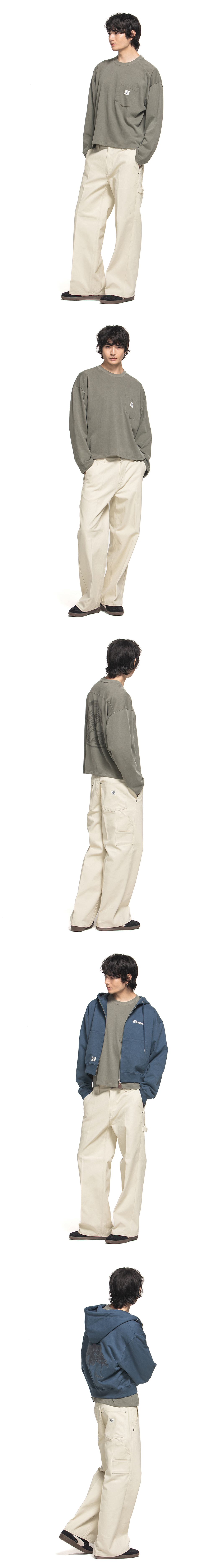 일반적인 실루엣의 카펜터 팬츠가 아닌 우드먼이 새롭게 재안하는 핏의 카펜터 팬츠 입니다. 와이드한 느낌과 스트레이트한 느낌을 동시에 가질 수 있도록 디자인 되었습니다. 카펜터 팬츠의 기본적인 디테일들이 더욱 돋보일 수 있도록 하였습니다. - 우드먼 W 켄톤 - 우드먼 나이태 리벳 - 우드먼 포인트 가죽 라벨 - 3줄 스트치 봉제 - #4.5 YKK 지퍼 - 카펜터 팬츠 망치걸이 스트랩