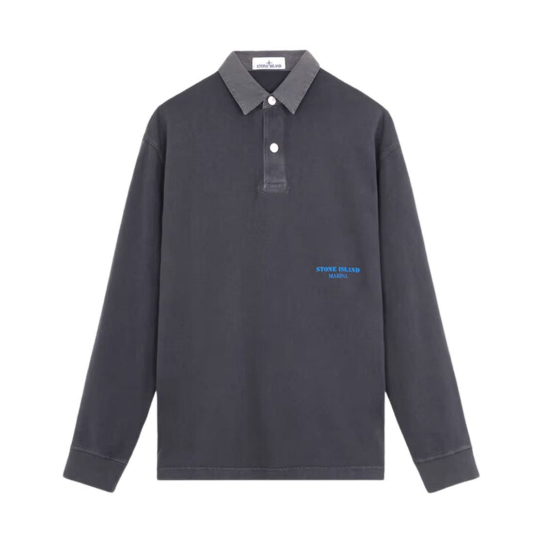 스톤 아일랜드 209X4 마리나 24/2 코튼 저지 올드 이펙트 오버사이즈 핏 롱슬리브 폴로 셔츠 잉크 블루 - 24FW
