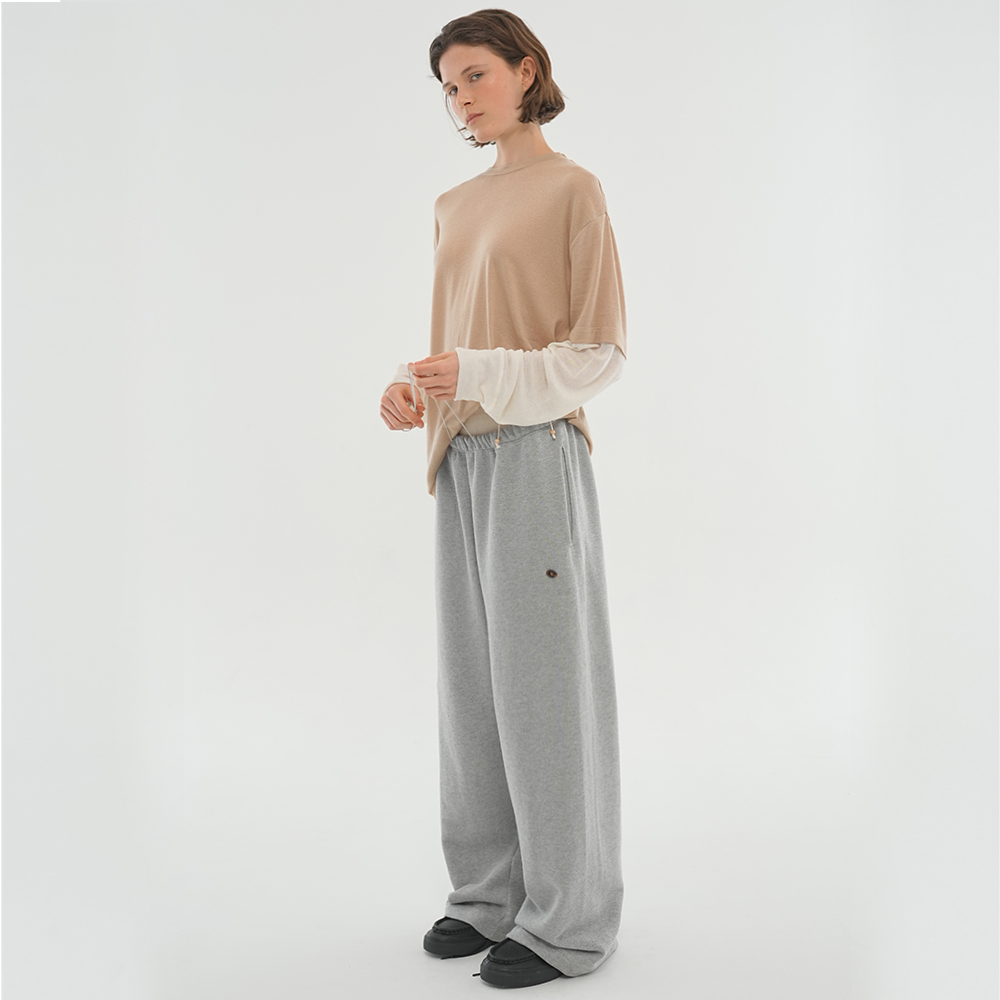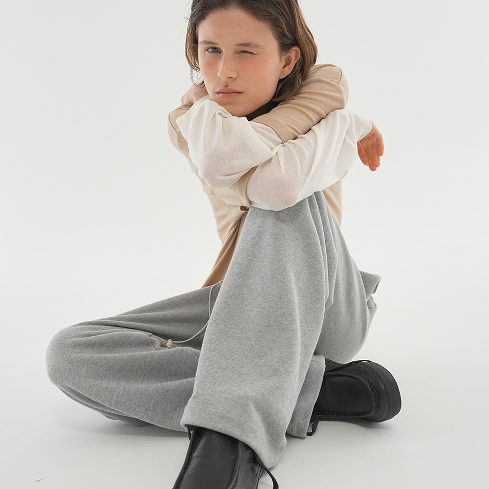+COTTON100% 소재를 사용한 엘엘엘 90S 스웻팬츠입니다. +컬러는 클래식한 MILK WHITE, HEATHER GREY, BROWN, BLACK 총 네가지 색상으로 만나실 수 있습니다. +허리에는 밴딩과 스트링이 있어 편하게 착용할 수 있으며, 로우 웨스트 스타일로 허리 아래로 걸쳐지는 핏입니다. +옆선에 절개 없이 패턴을 구성하여 시접으로 인해 실루엣이 부해 보이지 않도록 디자인 되었습니다. 깔끔한 라인을 유지하면서도 편안함을 제공합니다. +스트링은 30수 실을 땋아 제작되었으며, 끝에는 우드 장식이 있어 귀여운 요소를 추가했습니다. 우드 장식은 취향에 따라 뺄 수 있습니다. +뒷판 허리에는 엘엘엘(LLL) 로고가 불박 처리된 벨트 가죽 장식이 포함되어 있습니다. 트렌디한 스타일을 원하시면 벨트를 넣어서 착용할 수 있습니다. + 바지 앞쪽 한쪽에는 고급스러운 엘엘엘 음각 로고 장식이 있어 포인트가 됩니다.