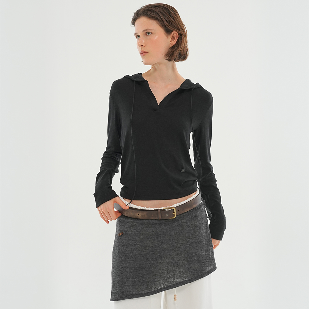 +84%TENCEL,10%WOOL, 6%SPAN 소재를 사용한 터치감이 부드럽고 보온성이 높은 울텐셀 져지 후디 입니다. +1:1 RIB 소재로 텐션감이 뛰어나며 터치감이 부드러운 소재입니다. +컬러는 클래식한 IVORY WHITE, BLACK 로 총 두 가지 색상으로 만나실 수 있습니다. +리브소재는 좁은 간격의 섬세한 표면으로 착용시 부한 느낌이 없어 부드럽게 몸을 감싸하면서 날씬한 핏을 연출할 수 있습니다. + 울텐셀 소재 특성상 약간의 신축성이 있으며, 적당히 루즈한 스트레이트 핏으로 55/66/77사이즈 모든 분들이 즐겨 입을 수 있습니다. +얇지 않고 적당히 밀도감있는 텐셀소재로 레이어드용 이너 제품뿐 아니라 단독으로 착용이 가능하며, 환절기부터 한겨울까지 활용도가 높은 디자인입니다. (봄,가을,겨울 착용가능) +오픈넥과 후디/ 슬림한 스트레이트 몸판 / 30수원사로 땋은 스트링이 특징입니다. +프론트 한쪽에는 고급스러운 엘엘엘 음각로고 장식이 포인트입니다.