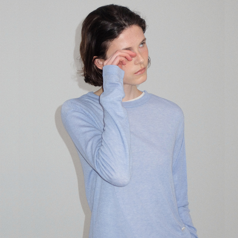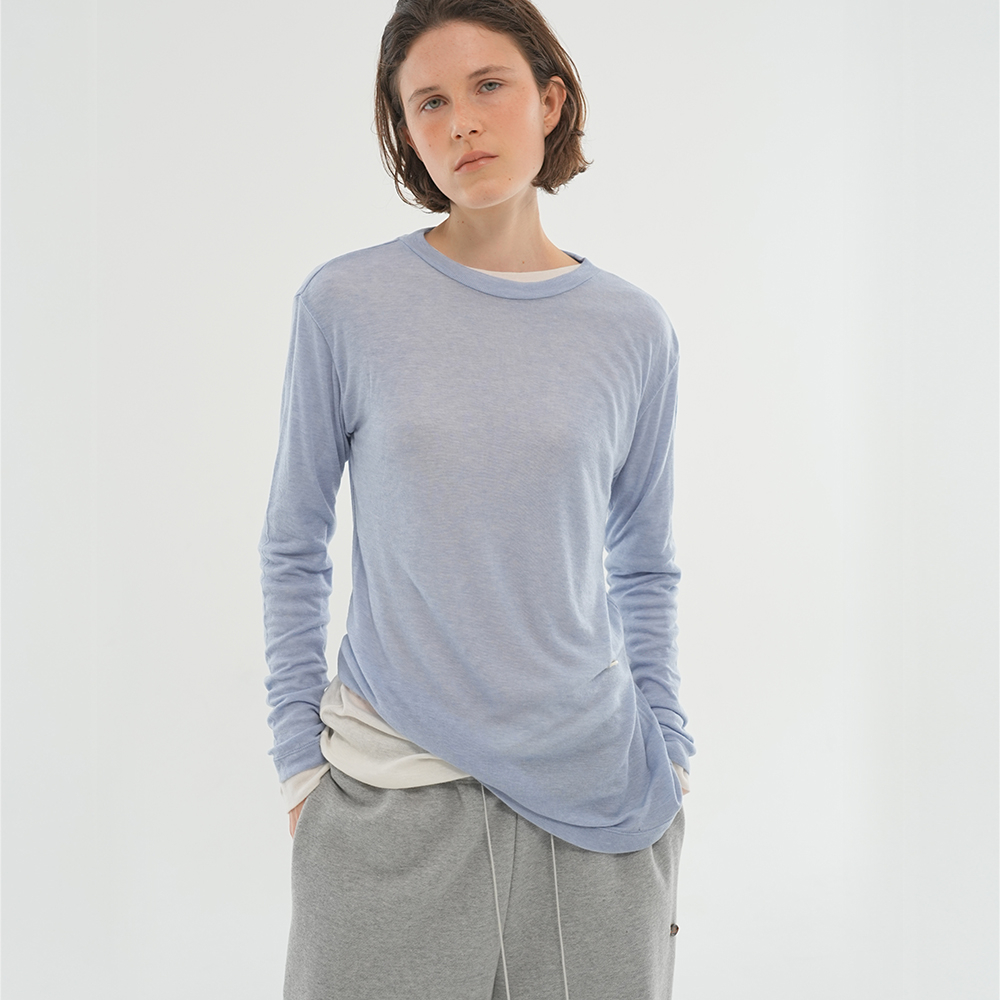 엘엘엘 디자인 스튜디오 울 립저지 롱 슬리브 티 스카이 블루