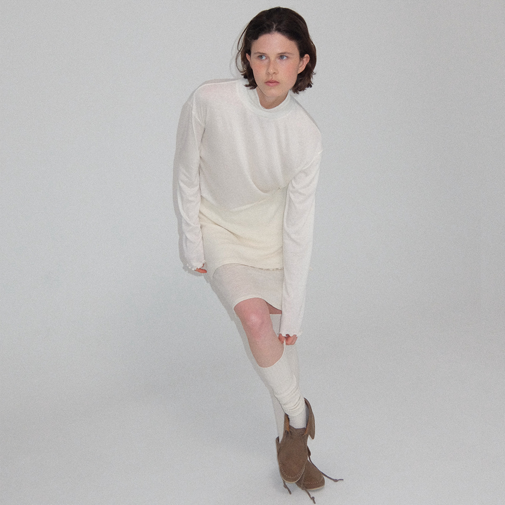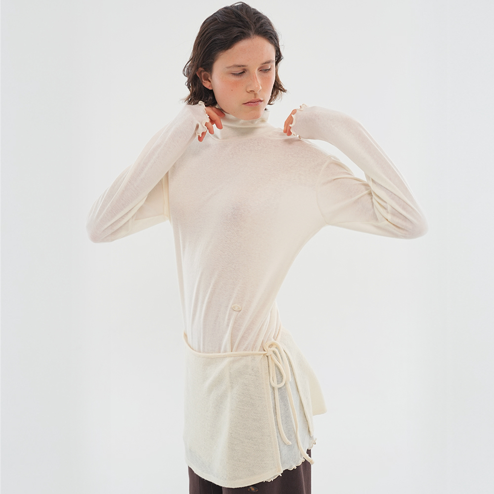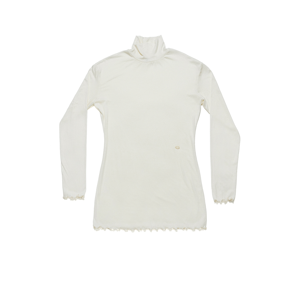 LLL Design Studio Wool Tencel Turtleneck Long Tee Ivory White
