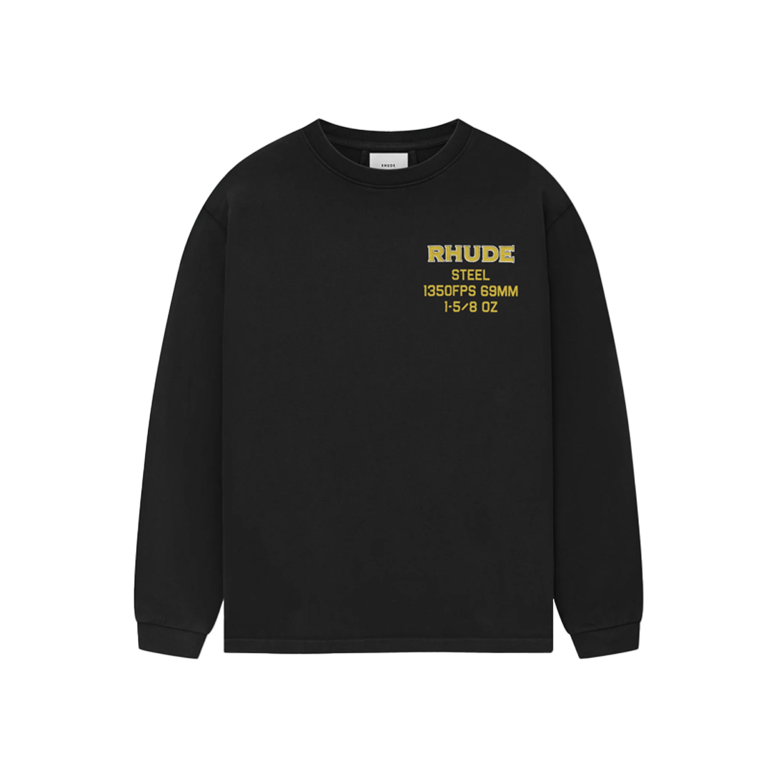 빈티지한 색감의 티셔츠에 더해진 옐로우 컬러 그래픽이 미국 스타일을 연상시키는 루드의 스틸 롱슬리브 티입니다. - 편안하고 여유 있는 실루엣 - 부드럽고 가벼운 원단 - 전/후면 빈티지한 그래픽 프린팅 - 그래픽은 초당 1,350피트로 발사되는는 69구경 산탄총에 쓰이는 1.625온스 탄약을 의미