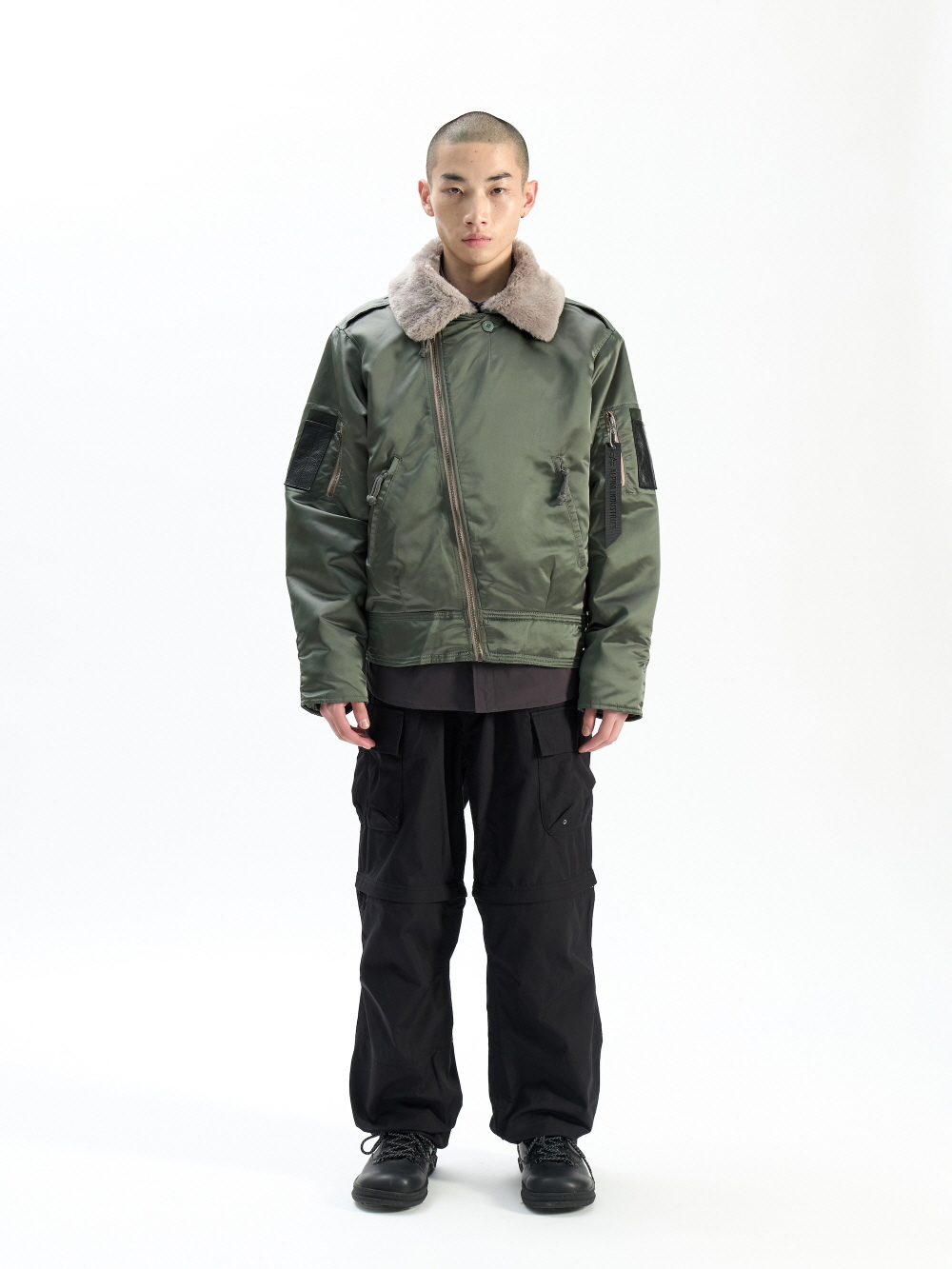 캐나다 공군의 플라이트 자켓에서 영감을 받아 오리지널 제품을 그대로 복각한 1960S RCAF CANADIAN AF TYPE III JACKET은 유틸리티 포켓, 조절 가능한 허리밴드, 그리고 수납 가능한 후드로 기능성을 높였습니다. · 생활 방수 · 프론트 지퍼 포켓과 면 드로우코드 풀리 · 가죽 패치 유틸리티 포켓 · 웨이스트 밴드 및 버클 · 인조 무톤 칼라 · 코어 핏