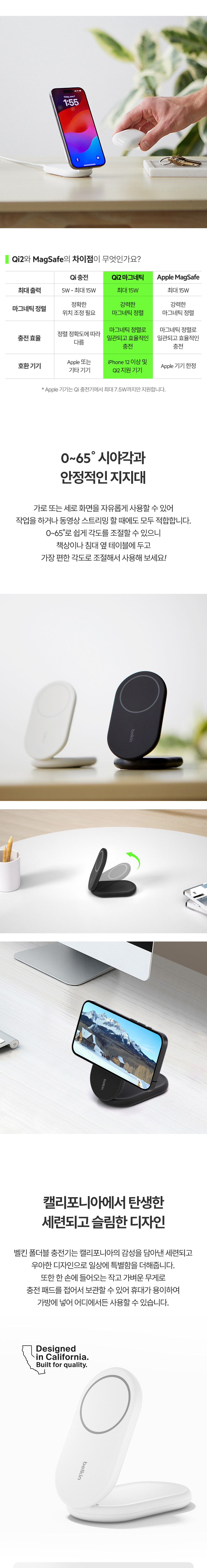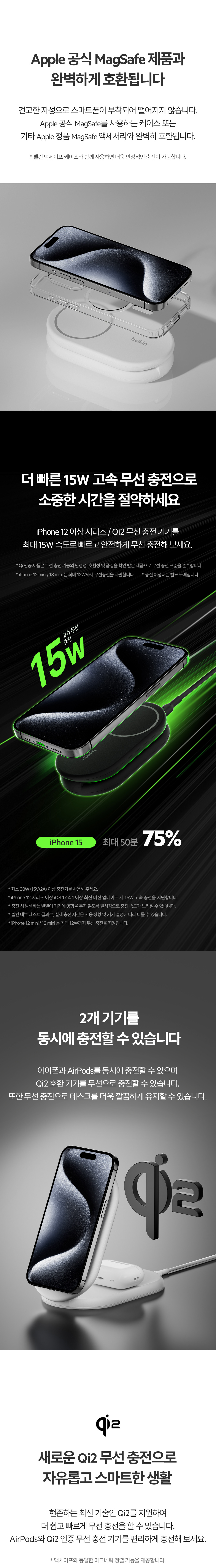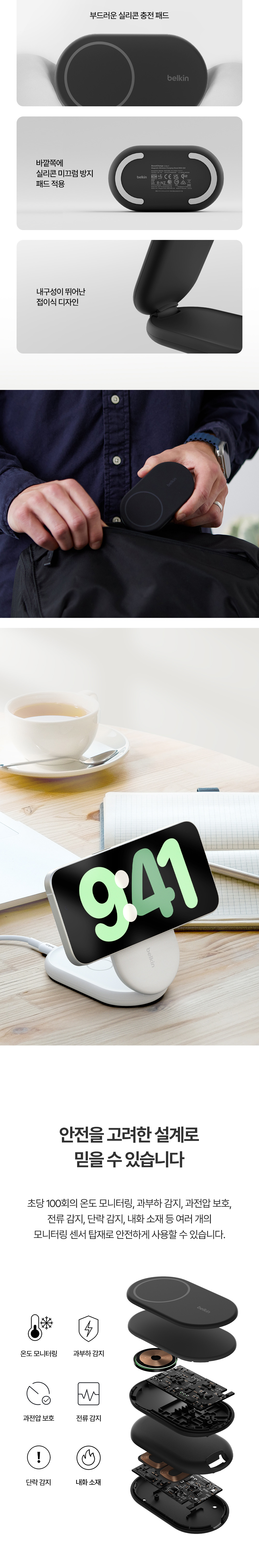 벨킨 Qi2 2in1 15W 마그네틱 폴더블 고속 무선 충전 스탠드 WIZ028qc 블랙