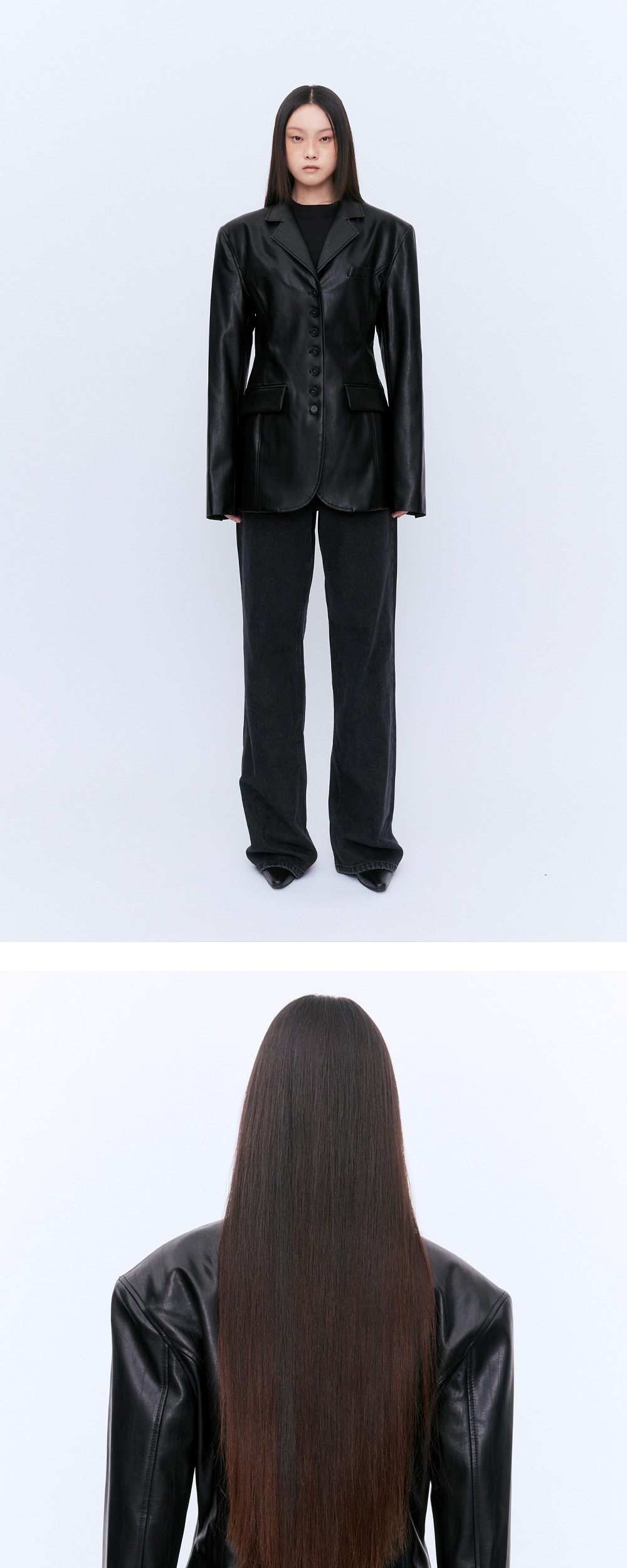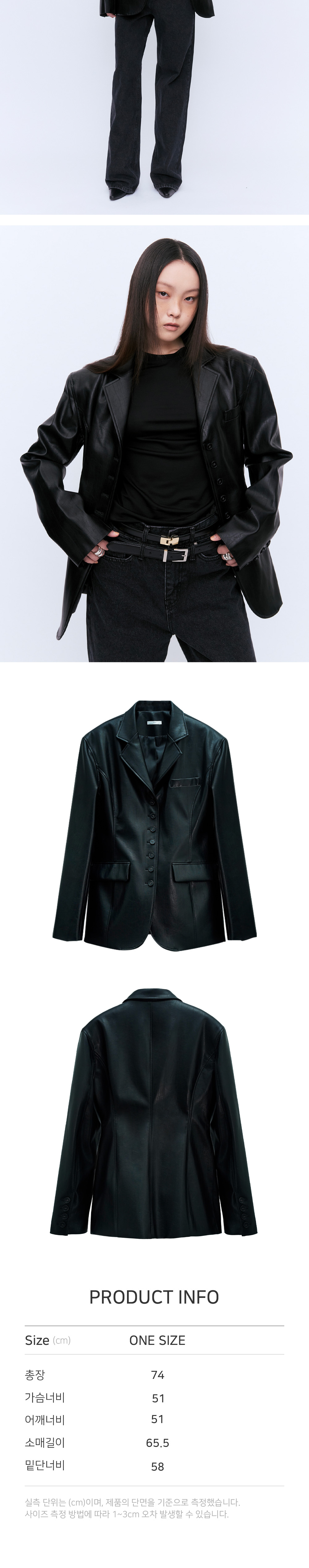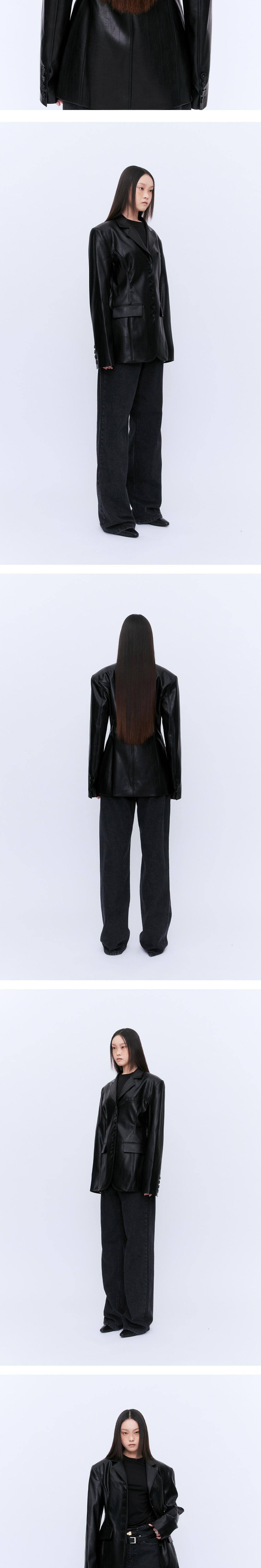 적당한 하프의 기장감과 클래식하면서도 컨템포러리한 디자인이 함께 돋보이는 비건레더자켓입니다. 센터를 중심으로 버튼의 디테일포인트를 주었습니다. 오리지널카우가죽과 비슷한 텍스처에 가까운 비건비건레더를 사용하였습니다. 시간이 지날수록 은은하며 자연스런 광택과 흐르는 디자인이 룩의 마무리로 완성시켜줍니다. 버튼을 오픈하여입었을때도 자켓하나만으로도 멋스럽고 자연스러운 룩으로 연출하실수 있는 아이템입니다.