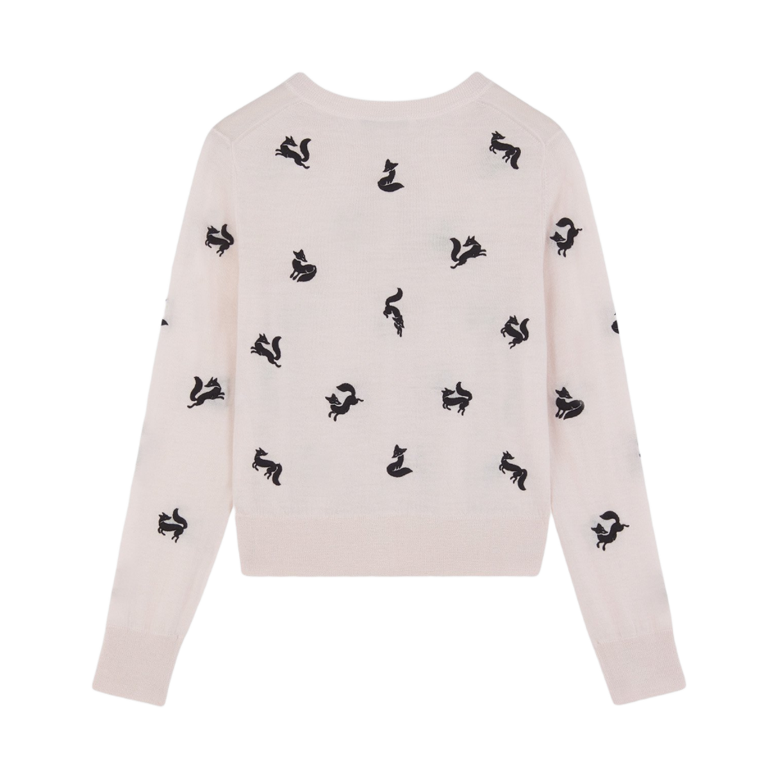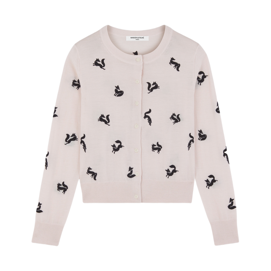 (W) Maison Kitsune Fancy Fox Embroidered Cardigan Fresh Cotton