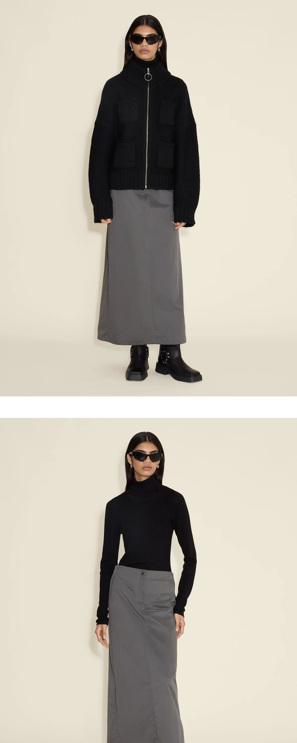클래식한 스포츠 실루엣에서 영감을 받은 홀츠베일러의 트랙 스커트입니다. - 레귤러 핏 - 하이라이즈 디자인 - 측면 슬릿 포켓 - 신축성 있는 밑단 - 밑단 스냅 버튼 디테일 * 모델: 175cm, S사이즈 착용
