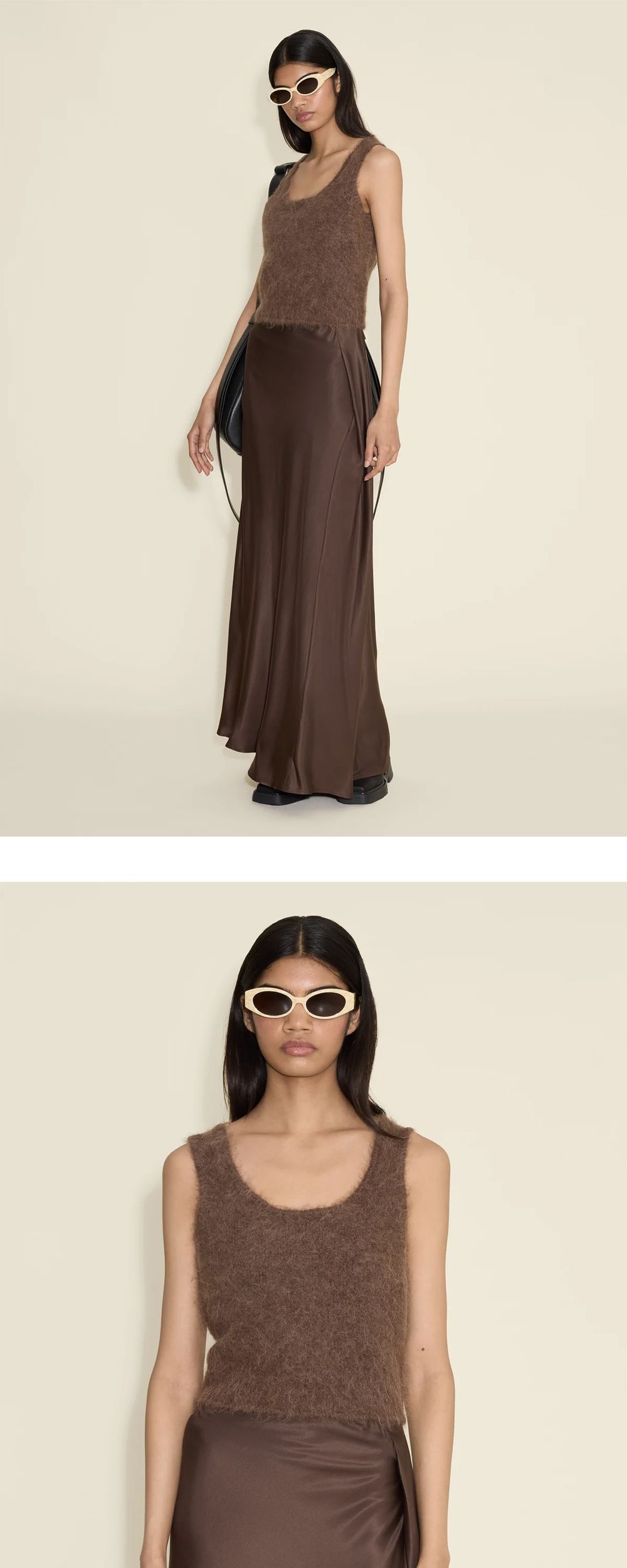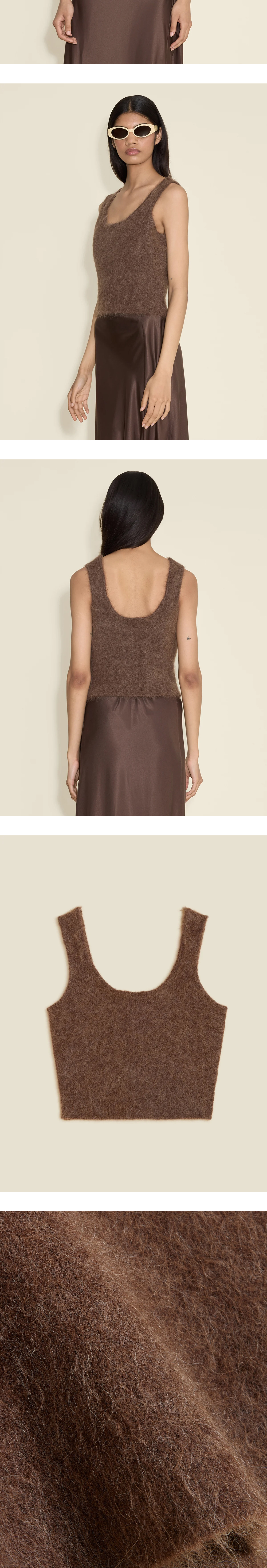 헤어리한 알파카 원단과 브라운 컬러가 포근한 느낌을 주는 홀츠베일러의 플러피 탑입니다. - 슬림 핏 - 크롭 기장 - 스쿱넥 디자인 - 헤어리한 질감의 알파카 혼방 소재 - 퓨어 플러피 스커트 & 가디건과 셋업 가능 * 모델: 175cm, S사이즈 착용