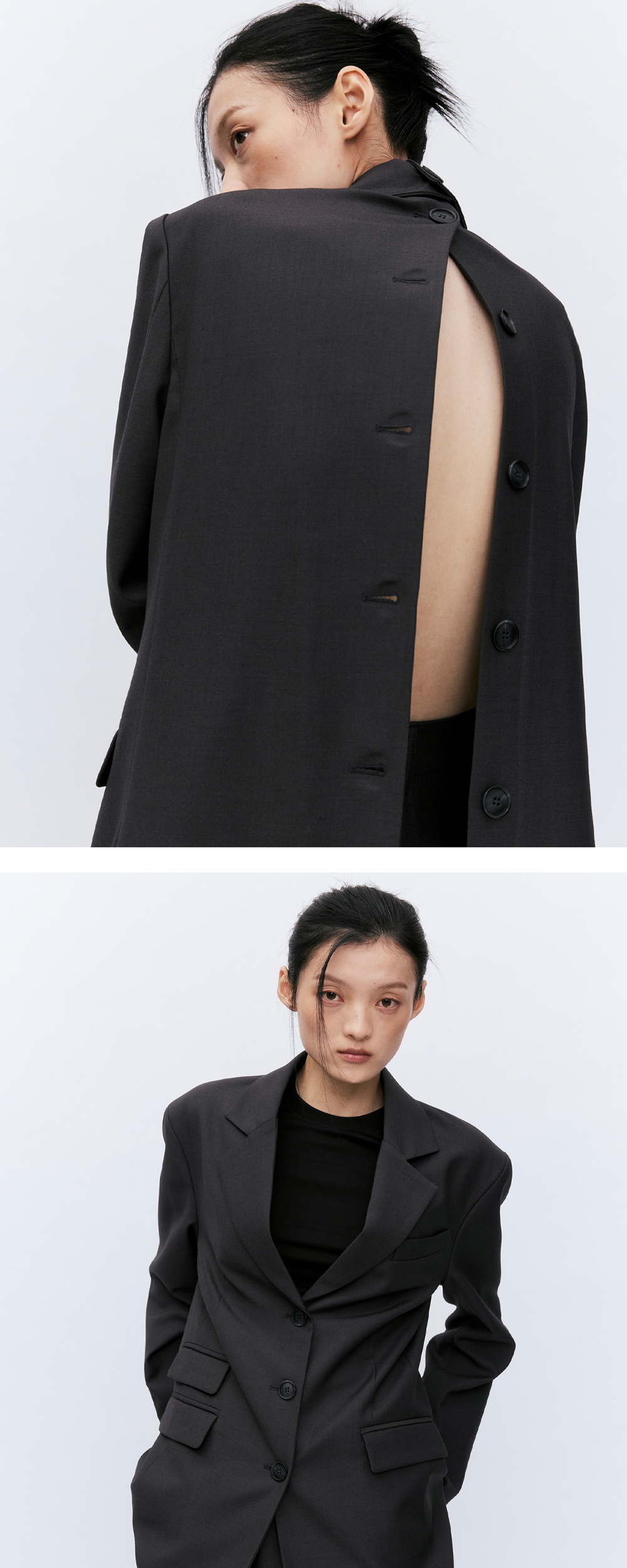 테일러드 수트자켓으로 시간에 구애받지 않는 클래식한 디자인입니다. 뒤쪽 버튼의 디테일이 돋보이며 때에 따라 다양한 스타일로 연출이 가능한 매력적인 테일러드 셋업 자켓입니다. 테일러드 펜츠와 셋업으로 디자인하여 셋업으로 입었을때 하나의 룩처럼 완성도를 높여주는 유지만의 시그니처 테일러드 수트 자켓입니다.
