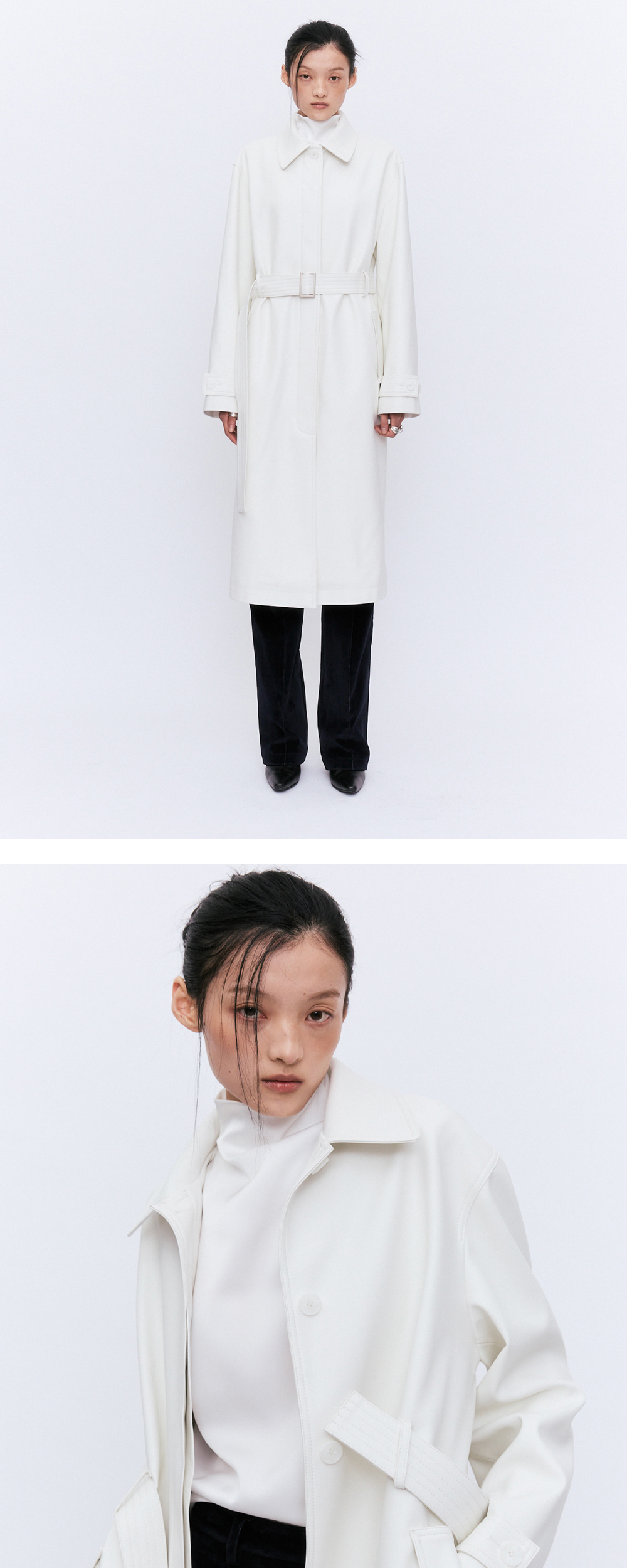 (오더메이드 제품으로 주문 후 14일 이상 소요됩니다) 극도로 절제되면서도 미니멀하고 고급스러운 무드를 극대화시켜주는 램스킨 롱 코트 입니다. 유지만의 시그니처 램스킨 롱코트이며 히든 단추로 니켈 버클을 잠구어서 연출하실수 있습니다. 코트를 오픈해서 입으면 움직일때마다 흐르는 유연한 핏이 매력적인 램스킨 롱코트입니다. 비건레더를 사용하였으며 오리지널 램스킨가죽보다 더 흡사한 원사로 시간이 지나도 크렉이 생기거나 갈라지지 않으며 여러번 테스트를 거쳐 만든 램스킨 롱코트입니다.