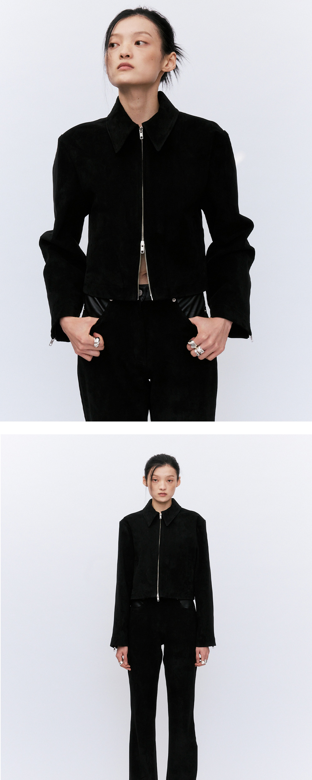 고급스러운 스웨이드 소재를 사용하여 미니멀하면서도 몸의 발란스를 잡아주는 디자인입니다. 스웨이드 펜츠와 셋업으로 구성하였으며 펜츠와 함께 셋업으로 착용하였을때 매력의 극대화를 느끼실수 있습니다. 이너또한 비건레더로 구성하여 보이지 않는 곳까지 디테일을 느끼실수 있습니다. 투웨이 ykk지퍼로 때에따라 웨어러블하게 다양한 연출을 하실수 있습니다.