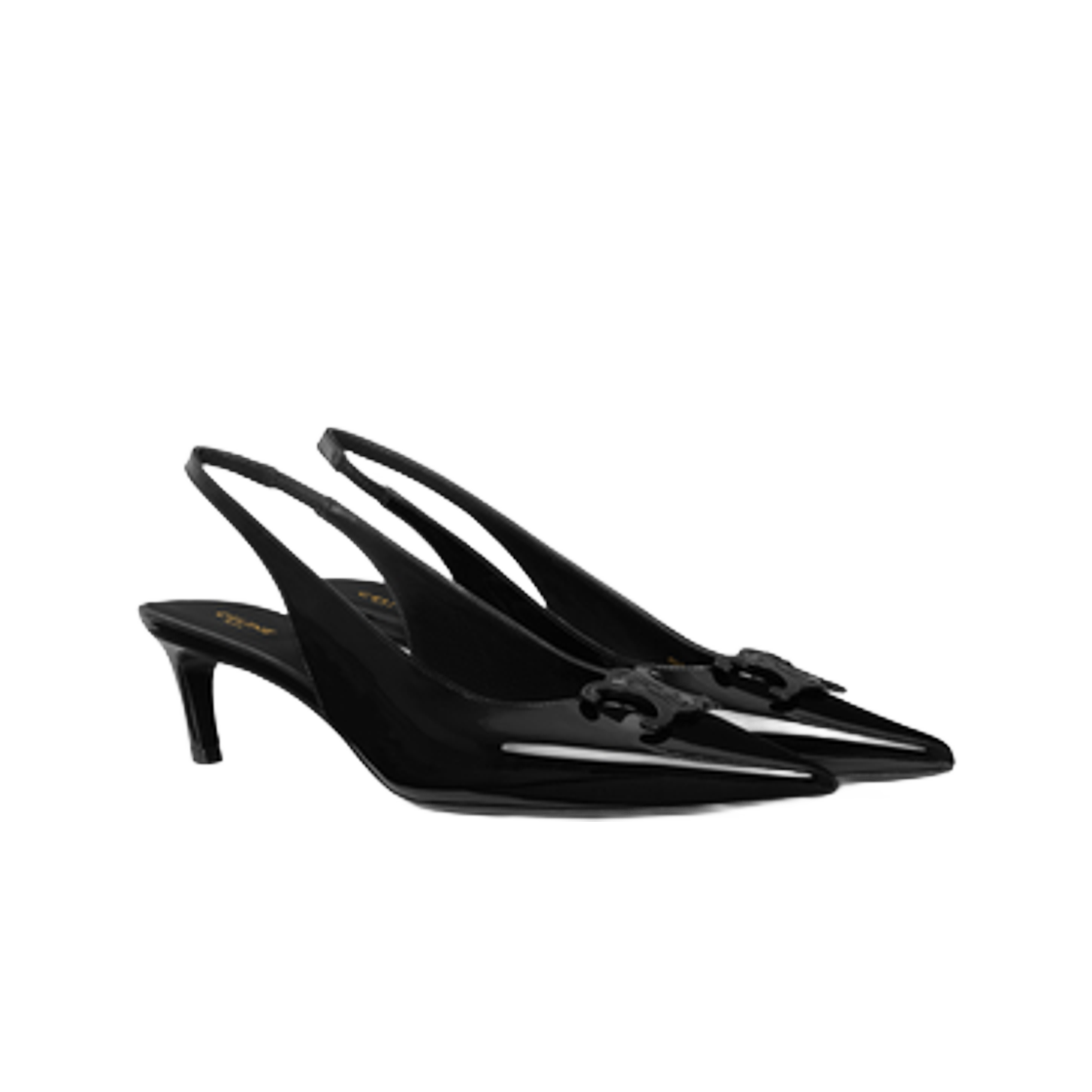 (W) Celine Alma Triomphe Slingback in Patent Calfskin Black