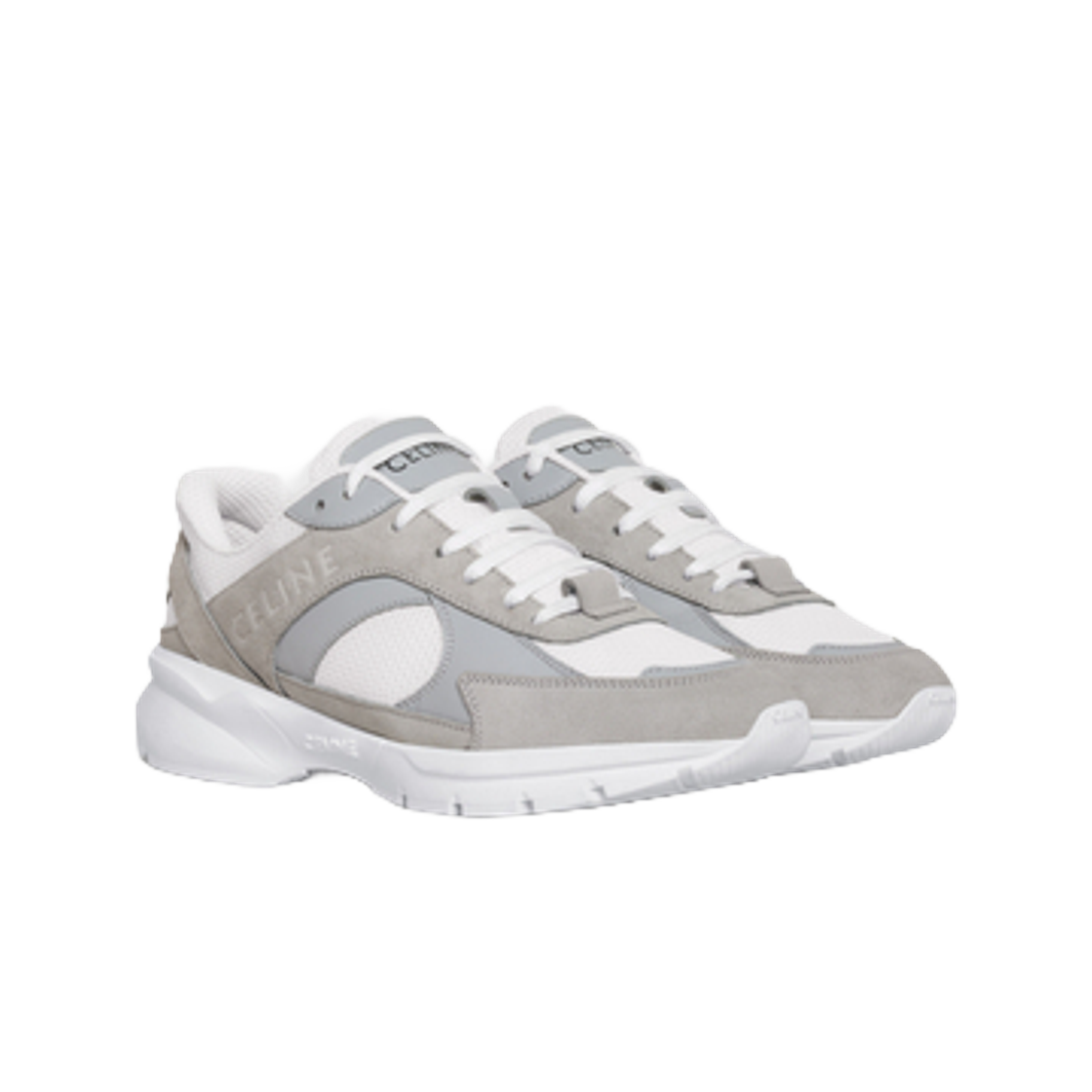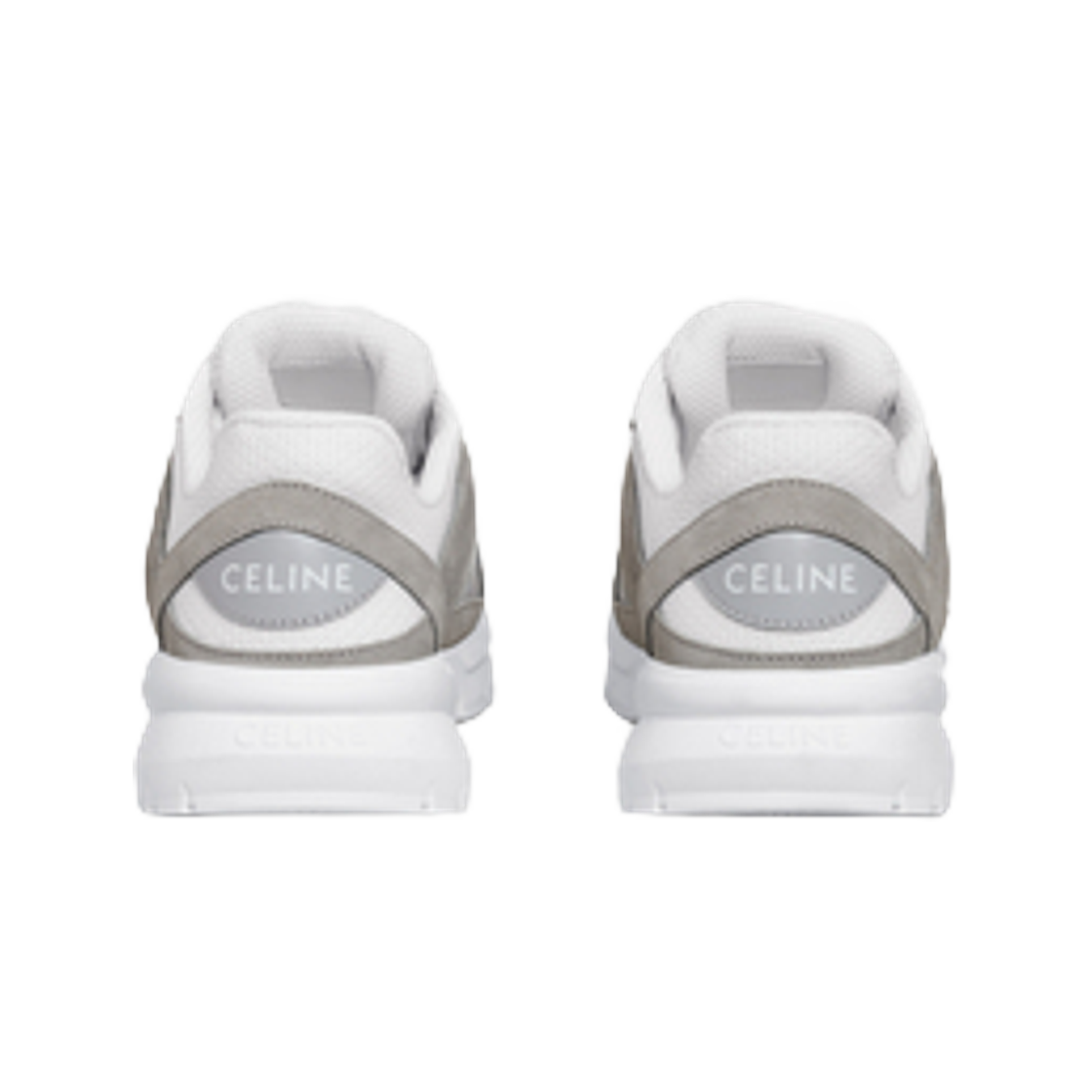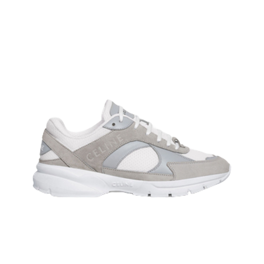 (W) Celine Runner CR-03 Low Lace Up Sneaker in Suede Calfskin, Mesh and Calfskin Grey Optic White